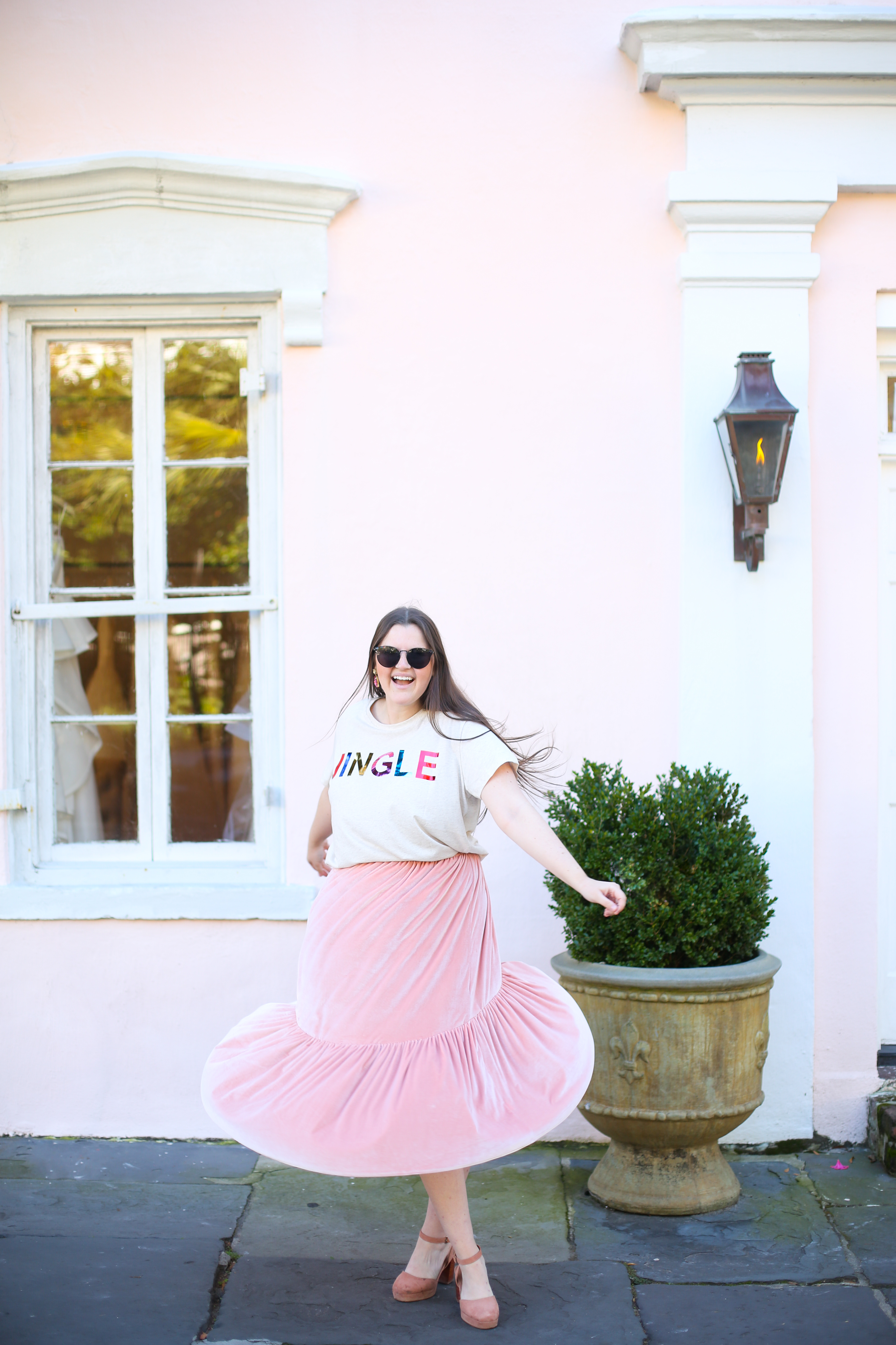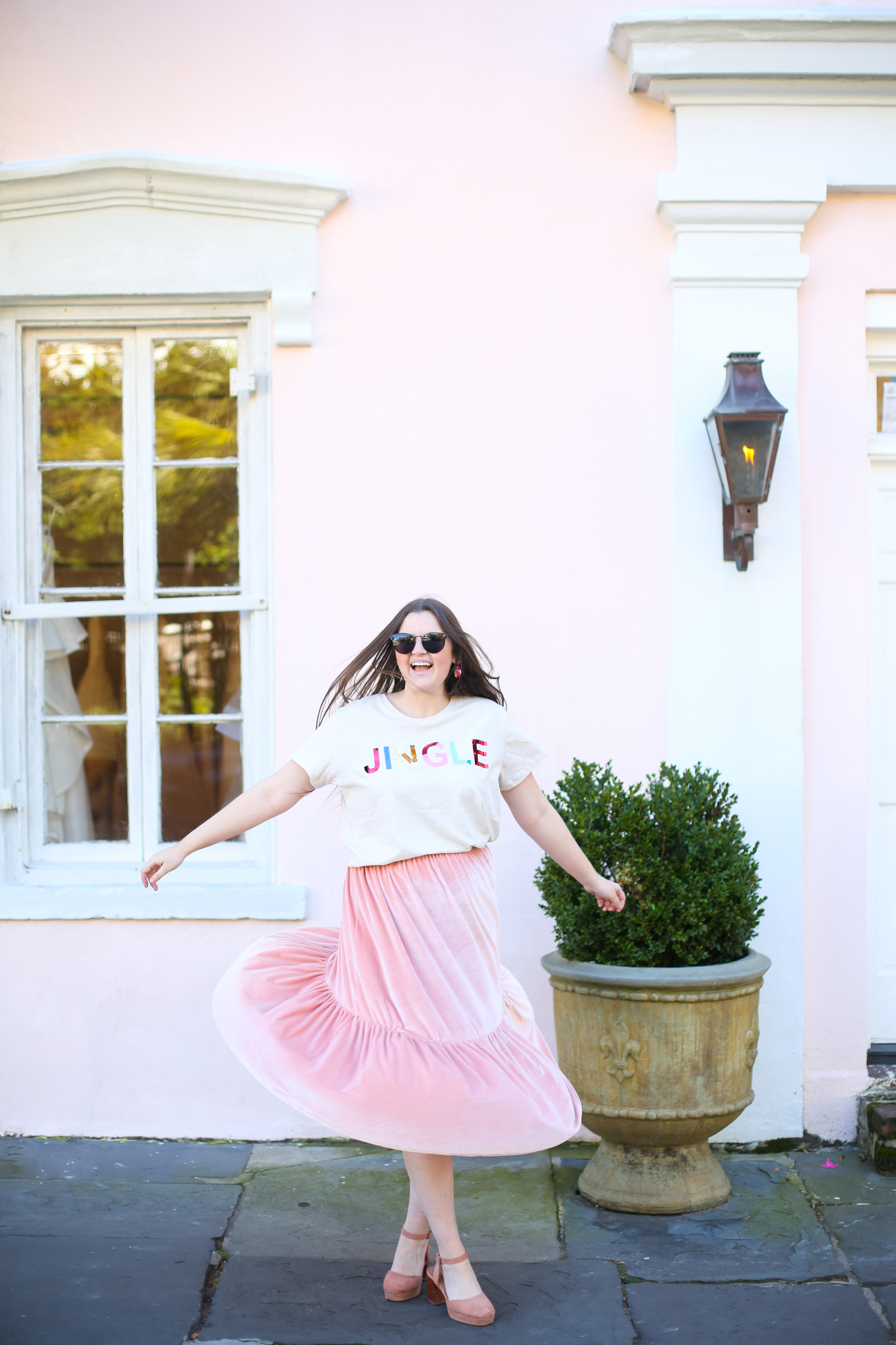 Top: H&M // Skirt: ASOS (similar) // Shoes: ASOS (similar) // Earrings: Bauble Bar // Sunglasses: Urban Outfitters