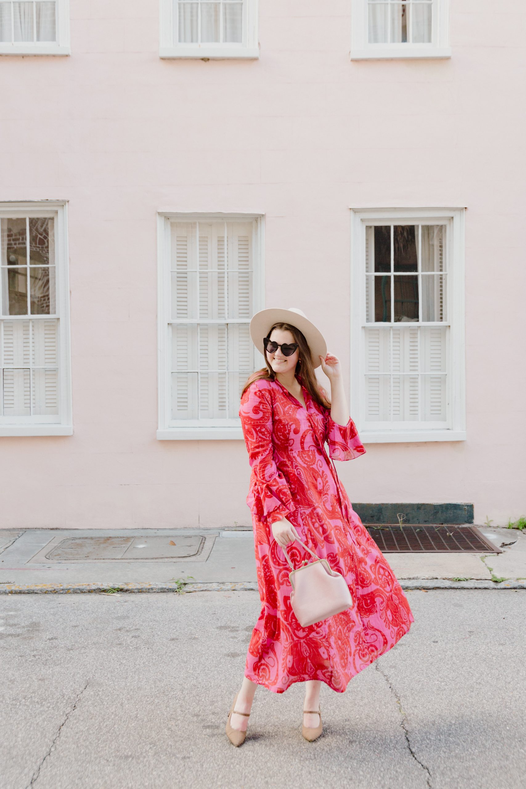 Dress: Matches Fashion | Shoes: Nordstrom (similar) | Bag: Anthropologie (similar) | Hat: Urban Outfitters | Earrings: Urban Outfitters | Sunglasses: Amazon | Photography: Kim Graham Photo