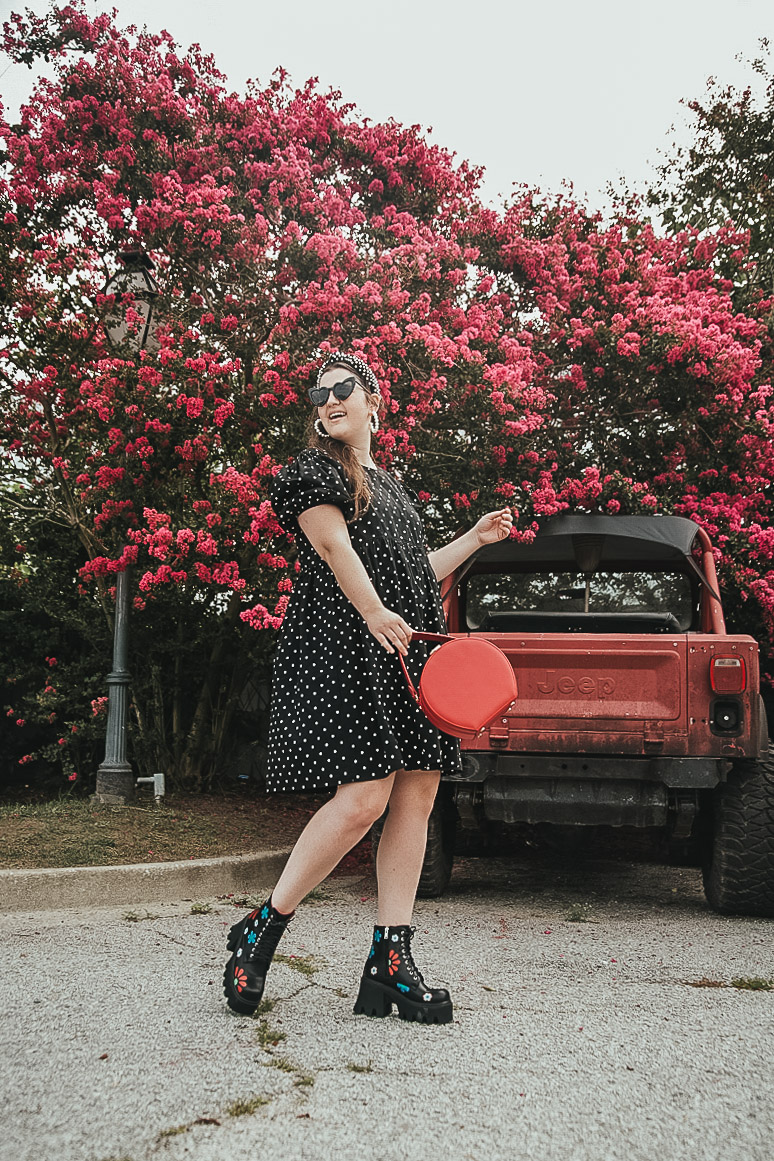 You’re cute as a button. Love this pretty polka dot dress!