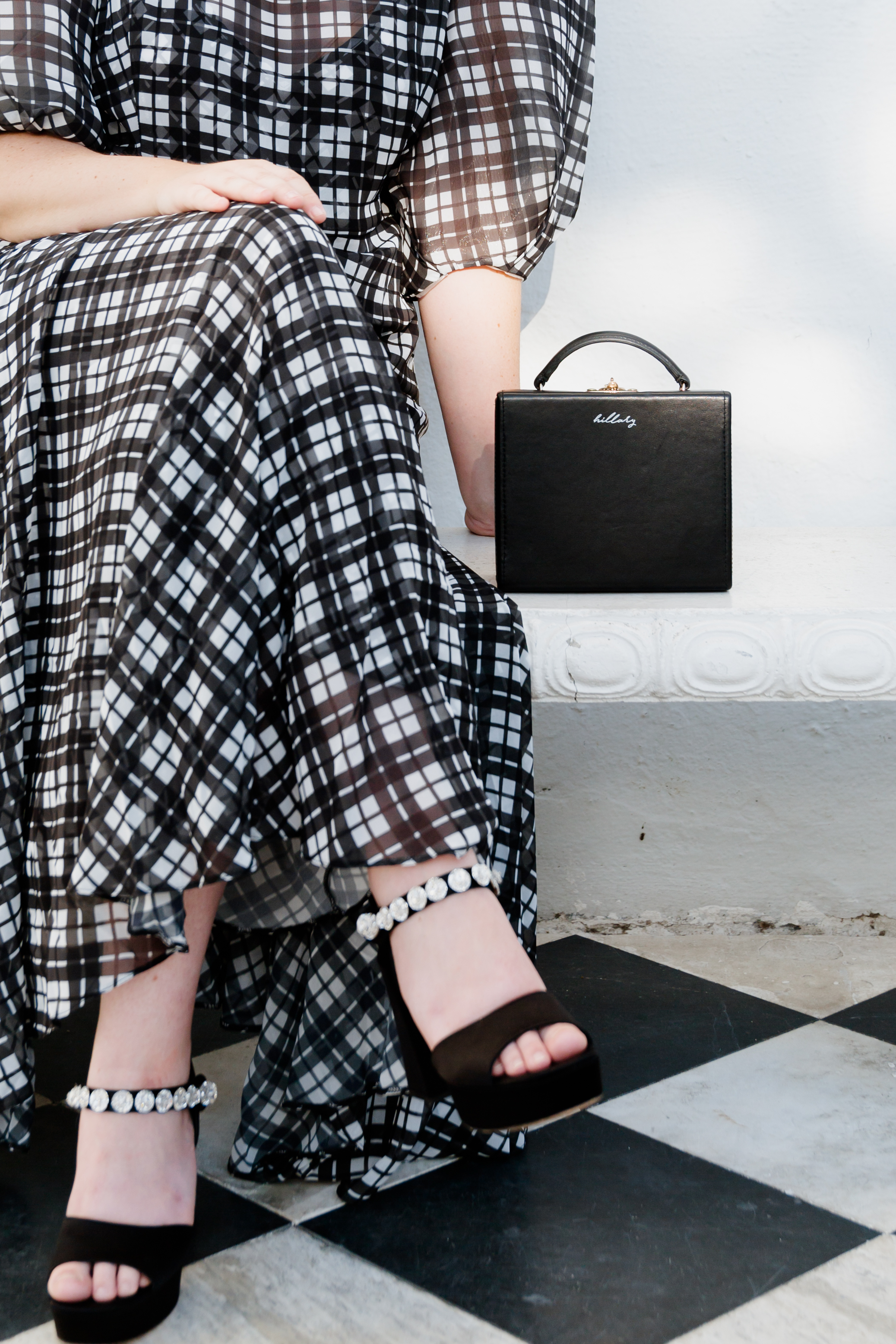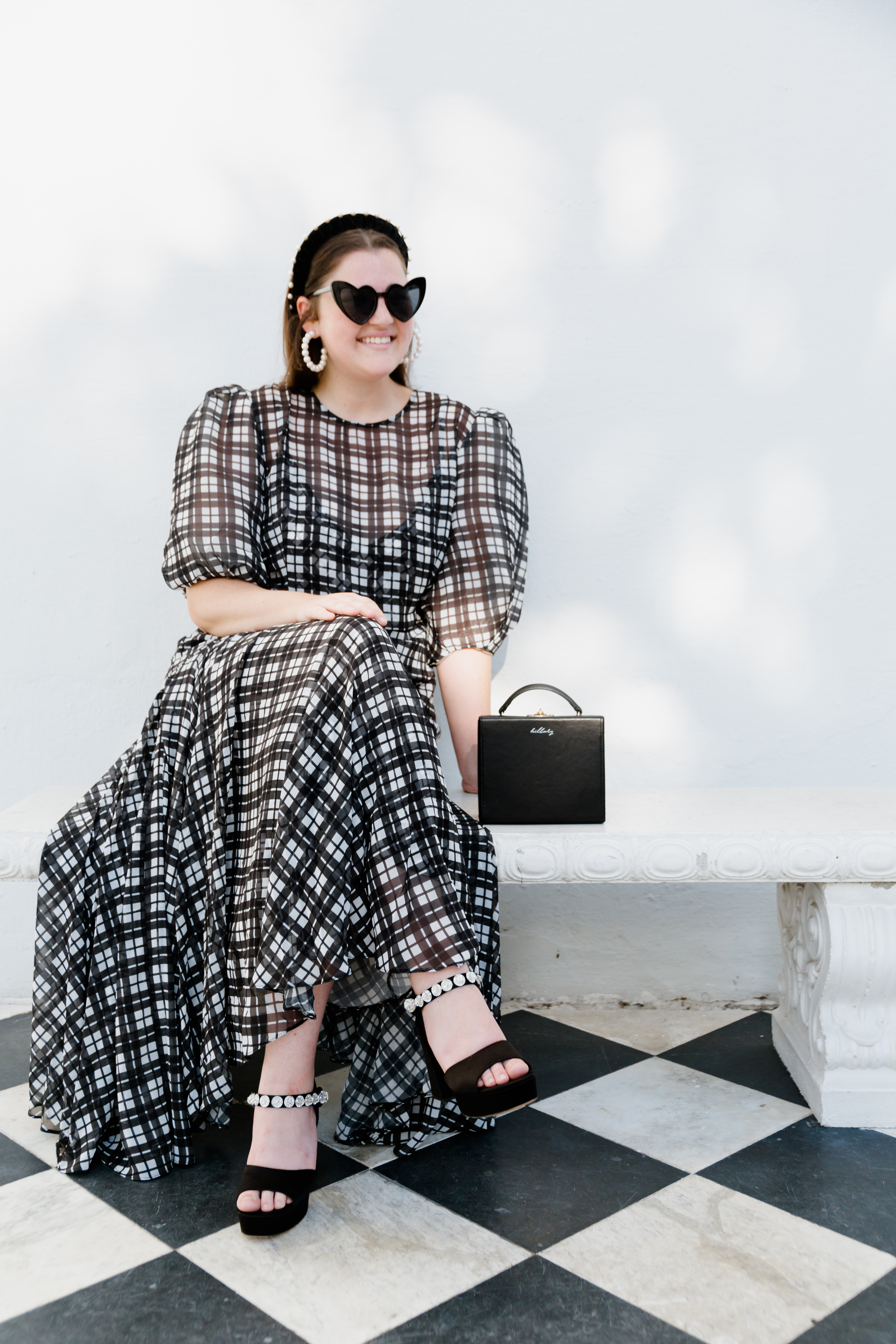 Dress: ASOS | Shoes: Miu Miu | Bag: Pop and Suki | Headband: Jennifer Behr | Earrings: Lele Sadoughi | Sunglasses: Amazon | Photography: Kim Graham Photo