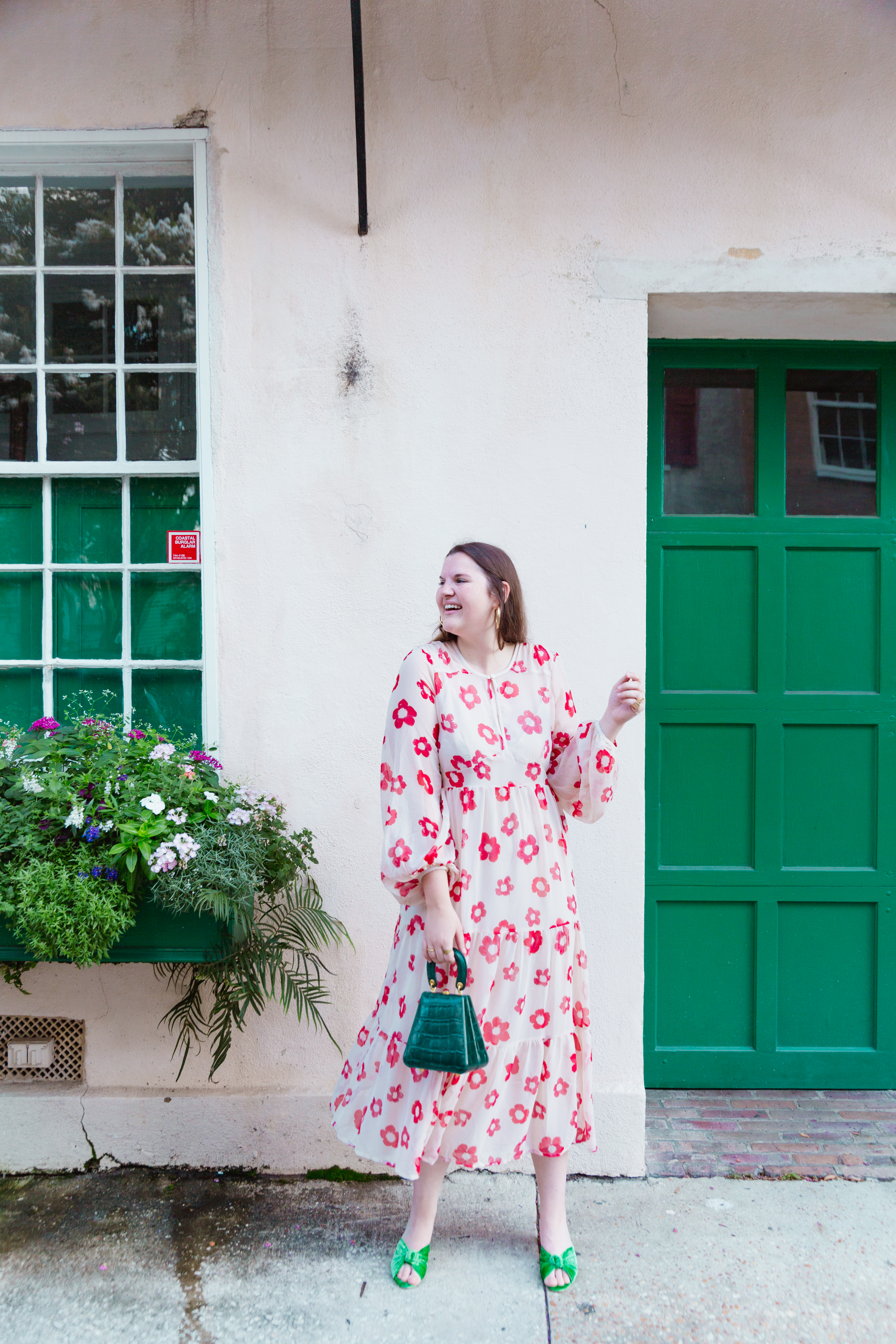 This dress is so cute and I love the cute print. Love how you paired it with these green shoes!