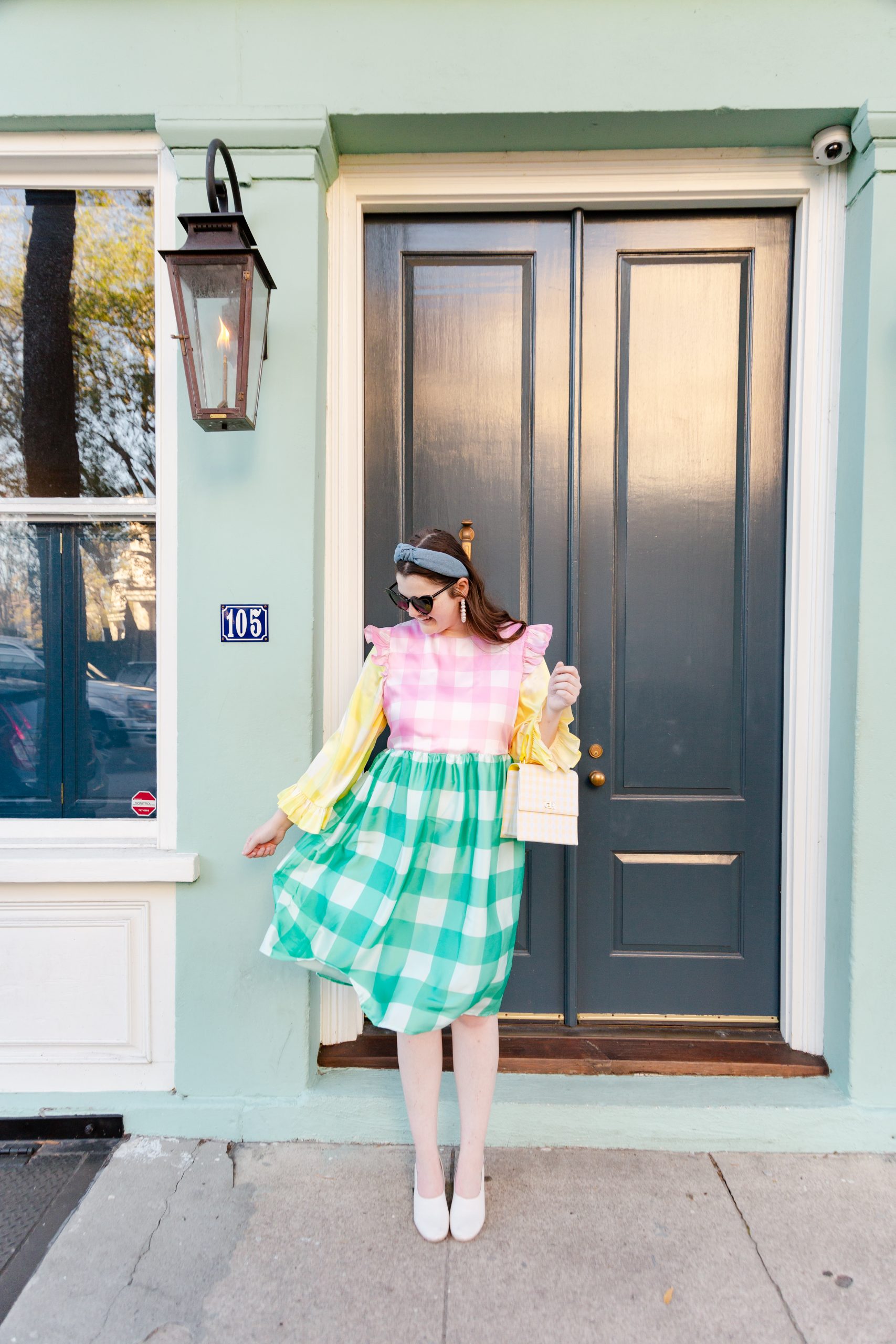 Dress: ASOS | Shoes: Nordstrom | Bag: Neely & Chloe | Headband: Lele Sadoughi | Earrings: Lele Sadoughi | Sunglasses: Amazon | Photography: Kim Graham Photo