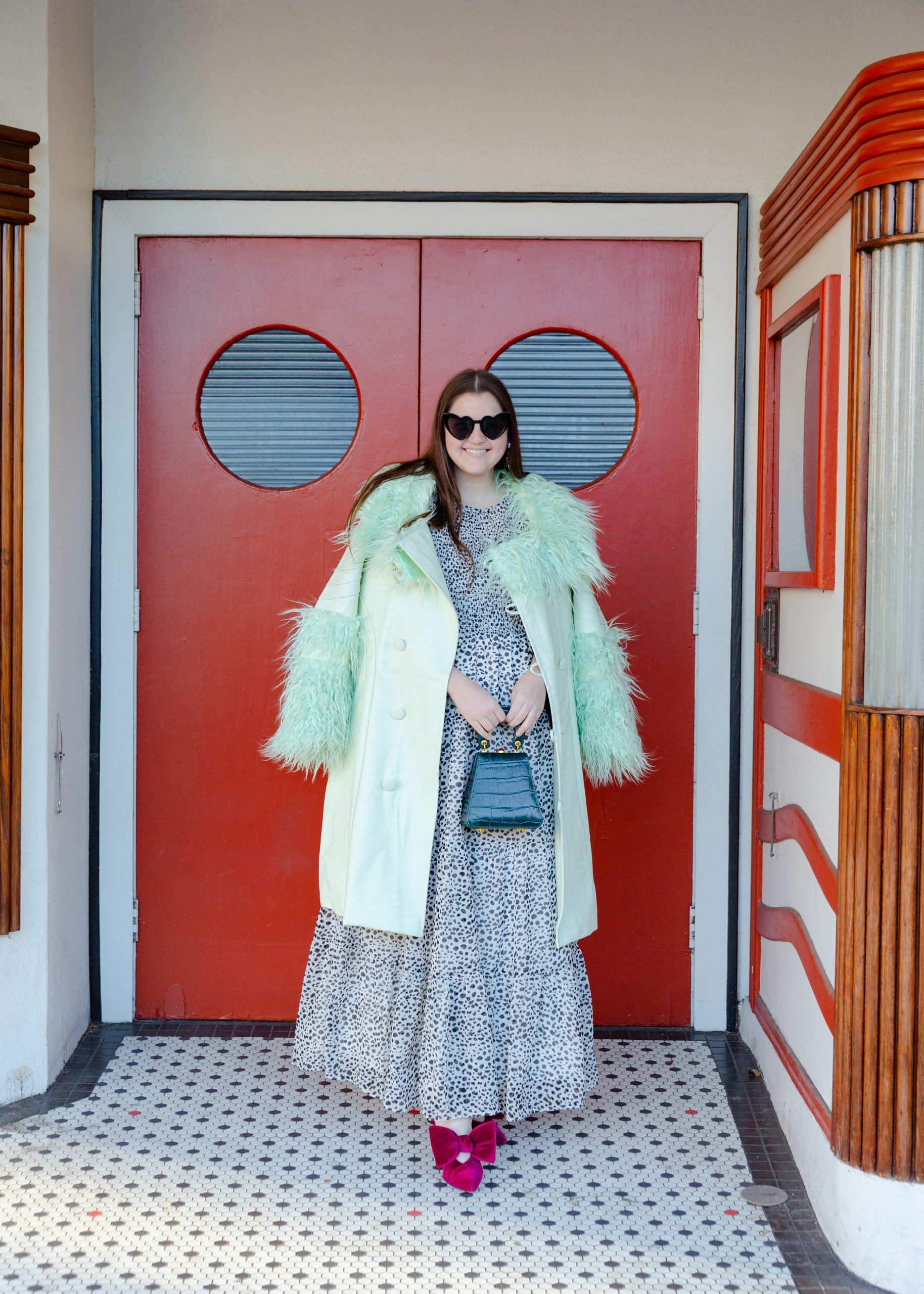 Coat: Urban Outfitters | Dress: ASOS | Shoes: ASOS | Bag: Staud | Earrings: Zara | Sunglasses: Amazon | Photography: Kim Graham Photo