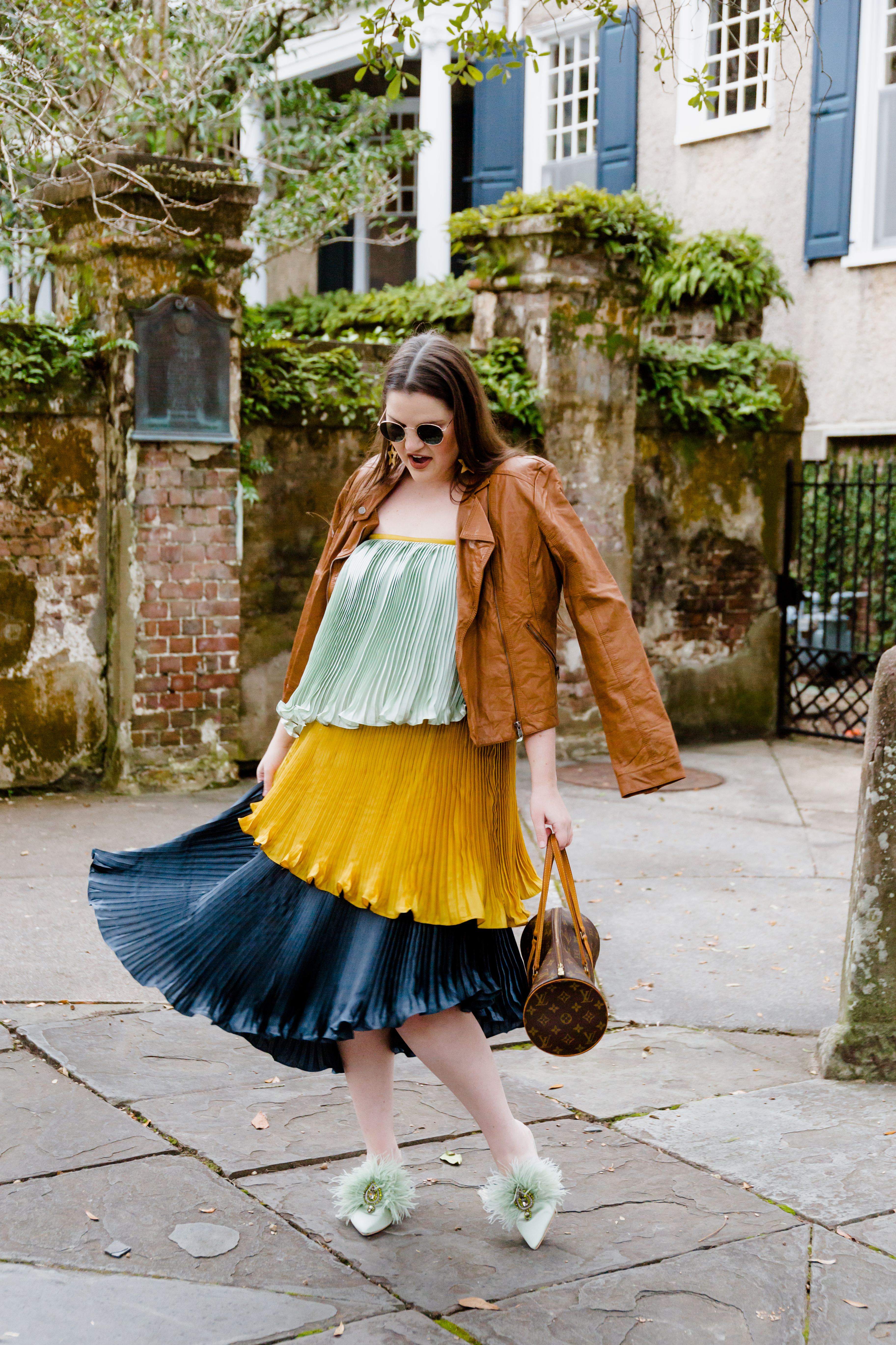 Dress: Anthropologie | Jacket: Similar | Shoes: Tory Burch | Bag: Louis Vuitton | Earrings: c/o Lisi Lerch | Photography: Kim Graham Photo