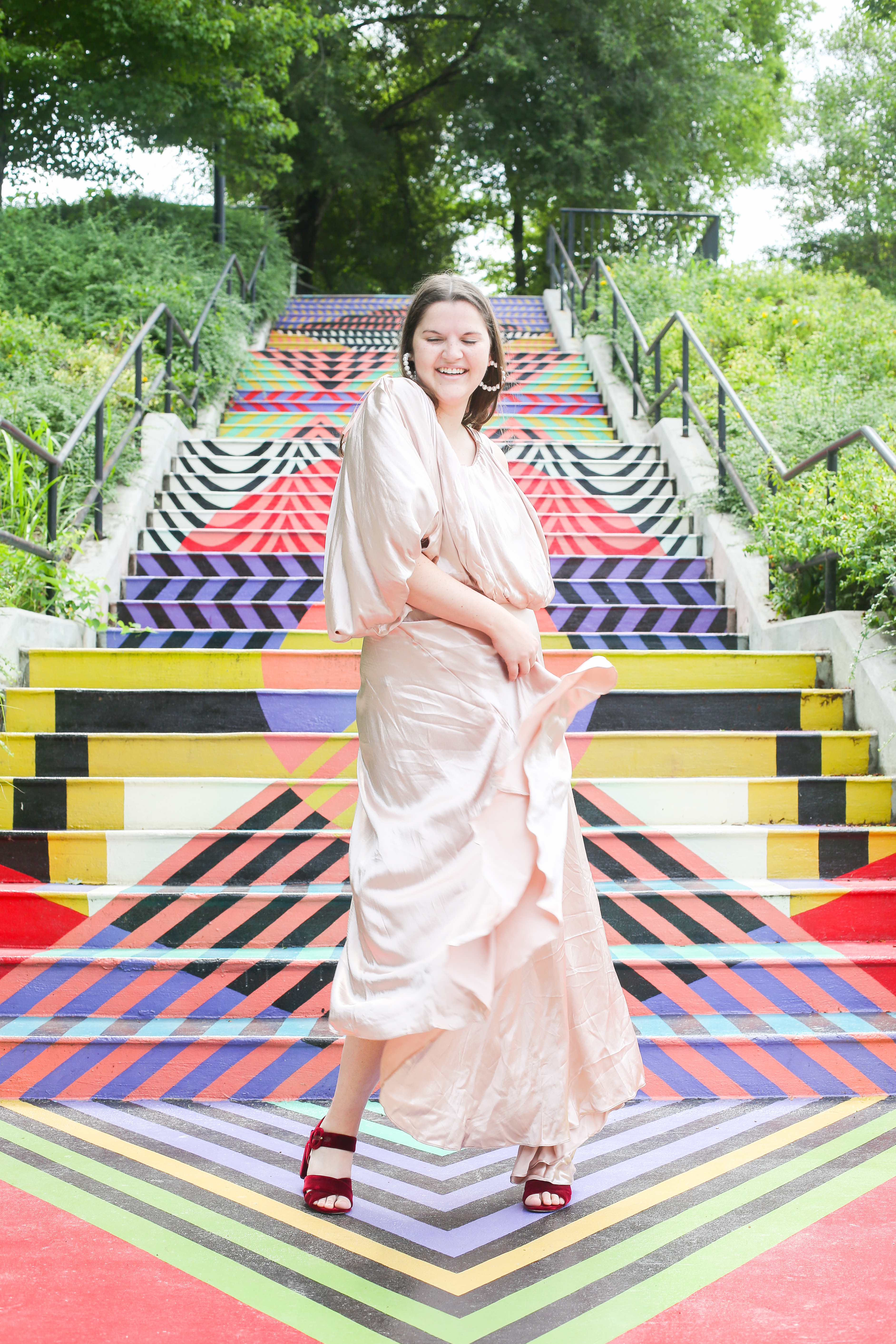 This looks like such a fun hotel to stay in! I will have to visit next time I travel to TN. Also love your dress and those fabulous painted stairs!!