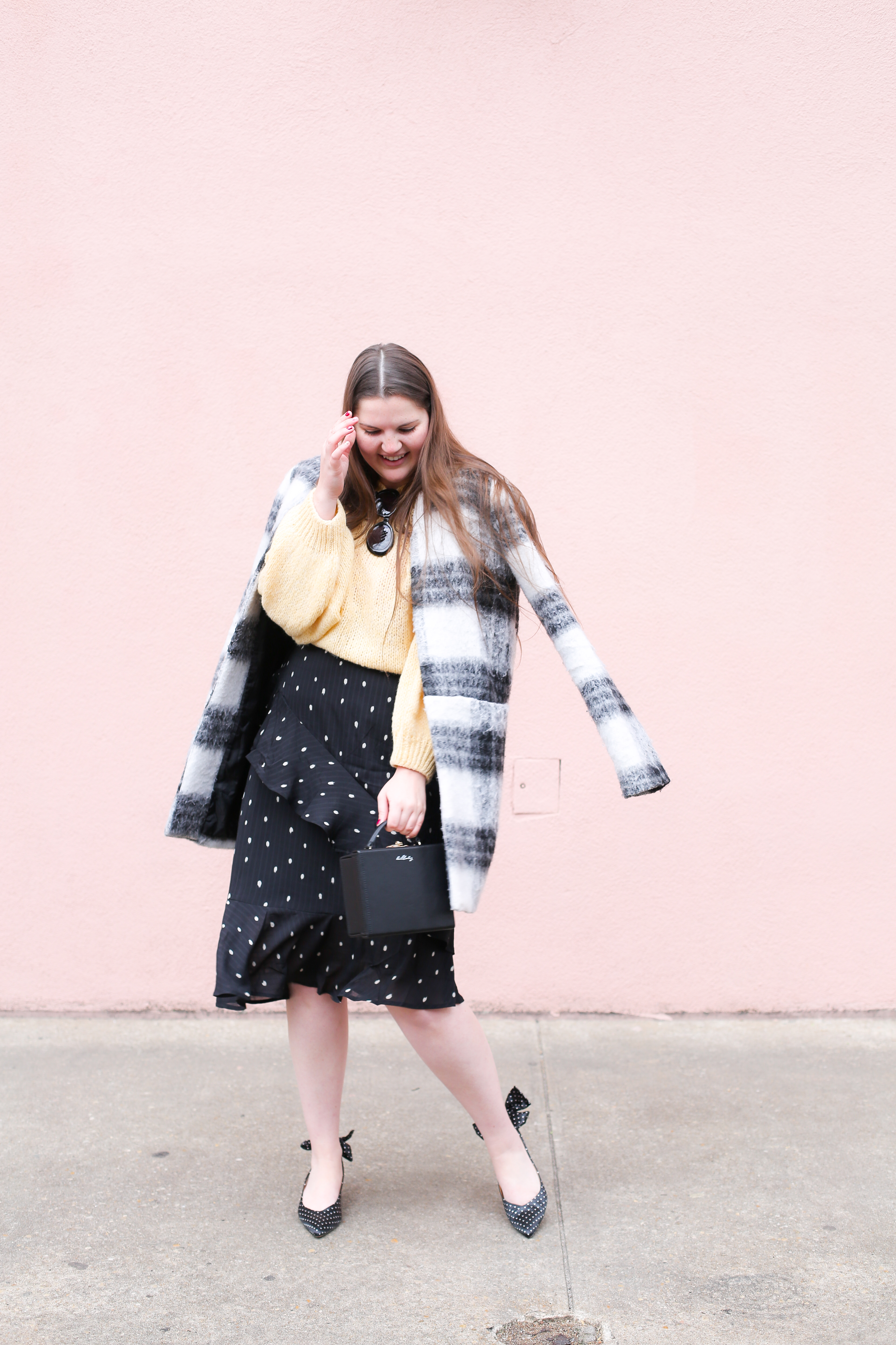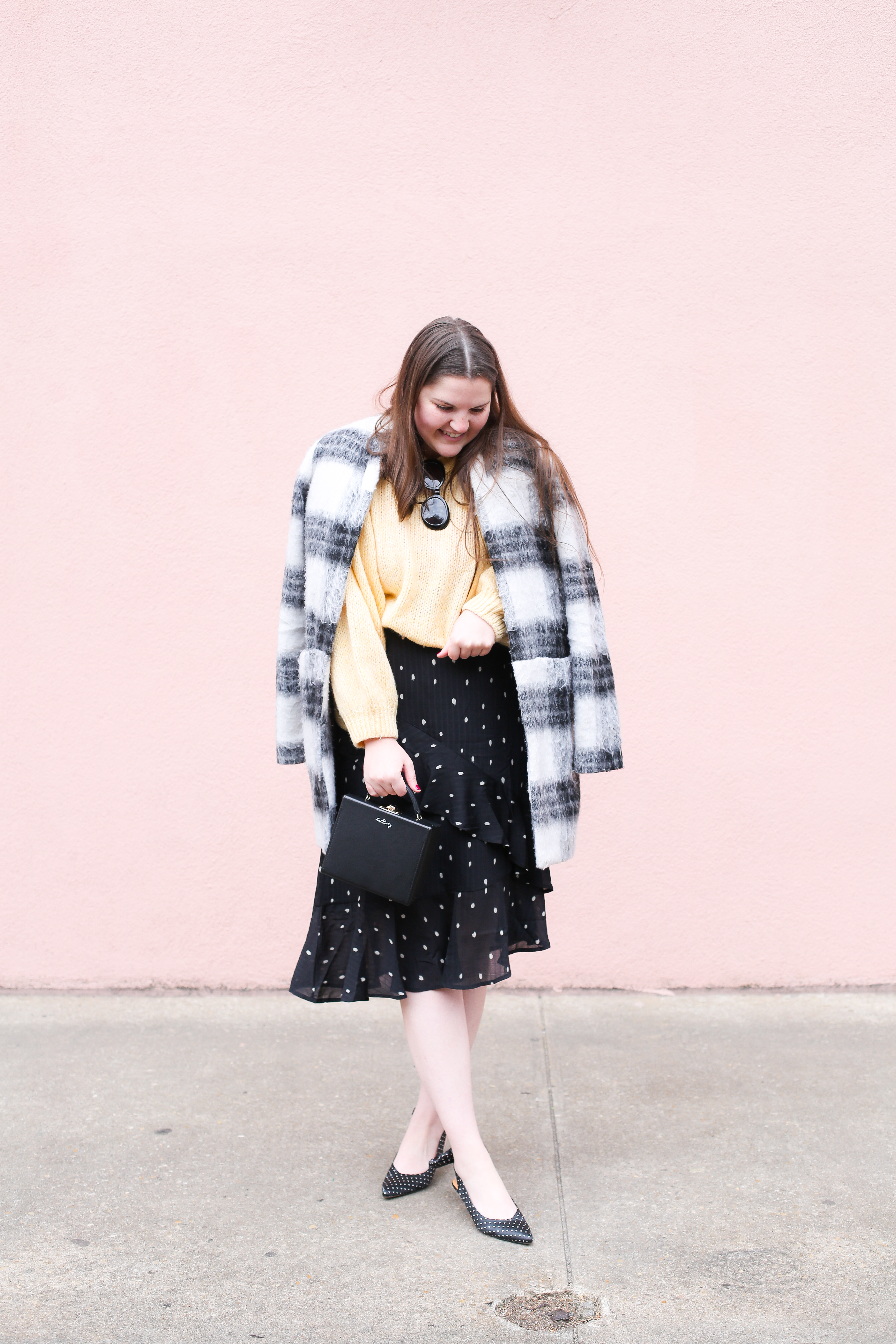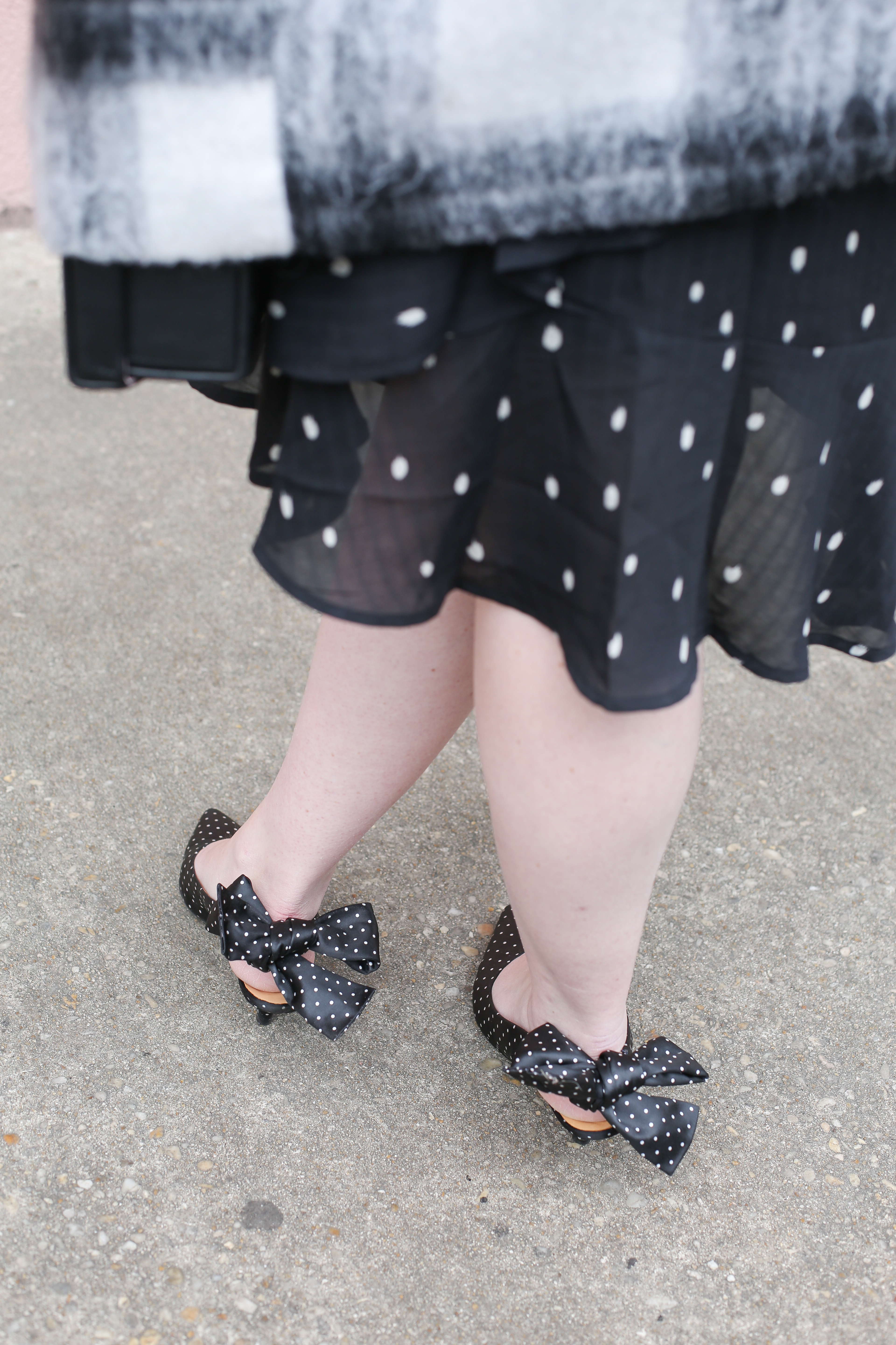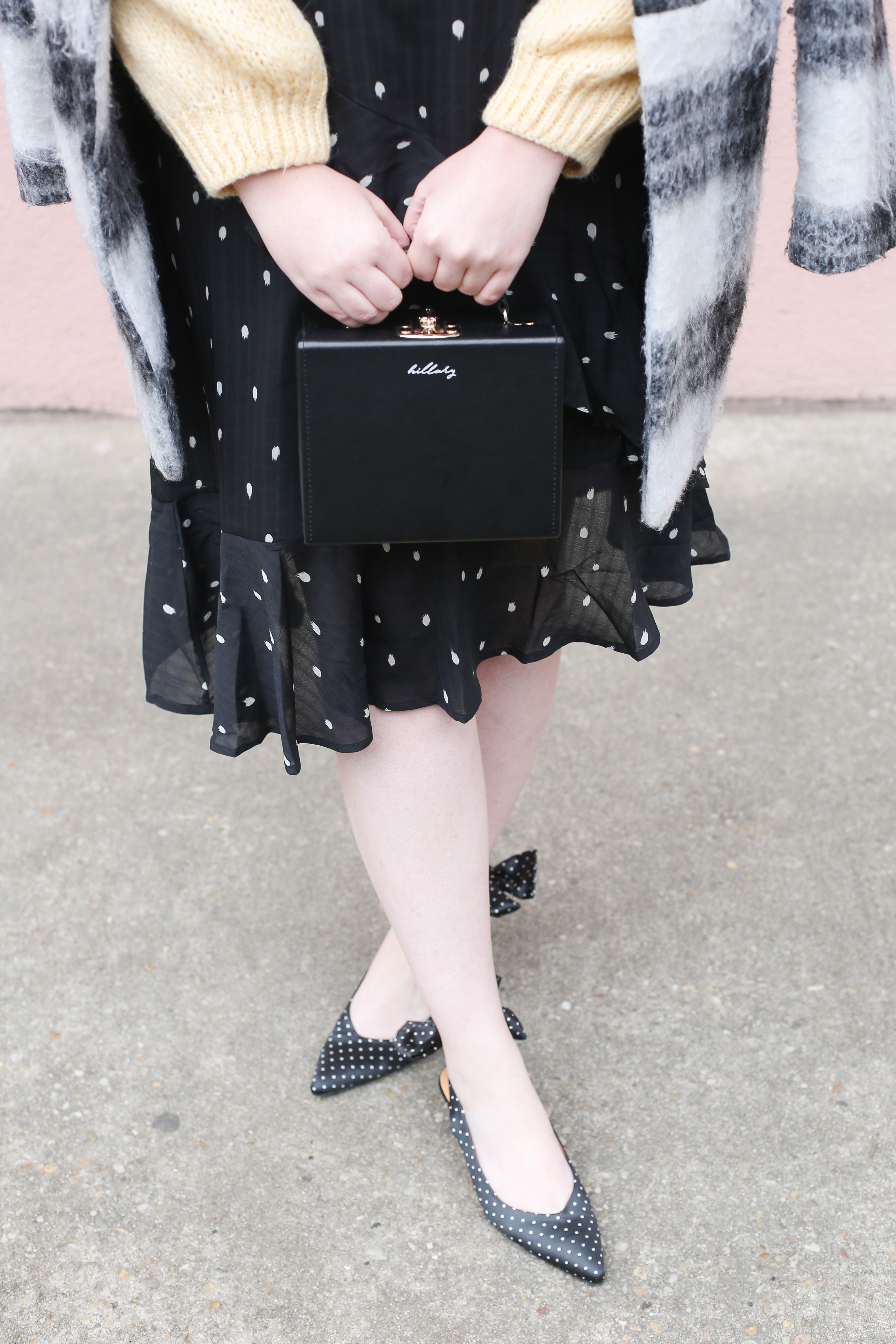 The slingback polka dot kitten heels are SO cute!! Love how you styled them for winter.