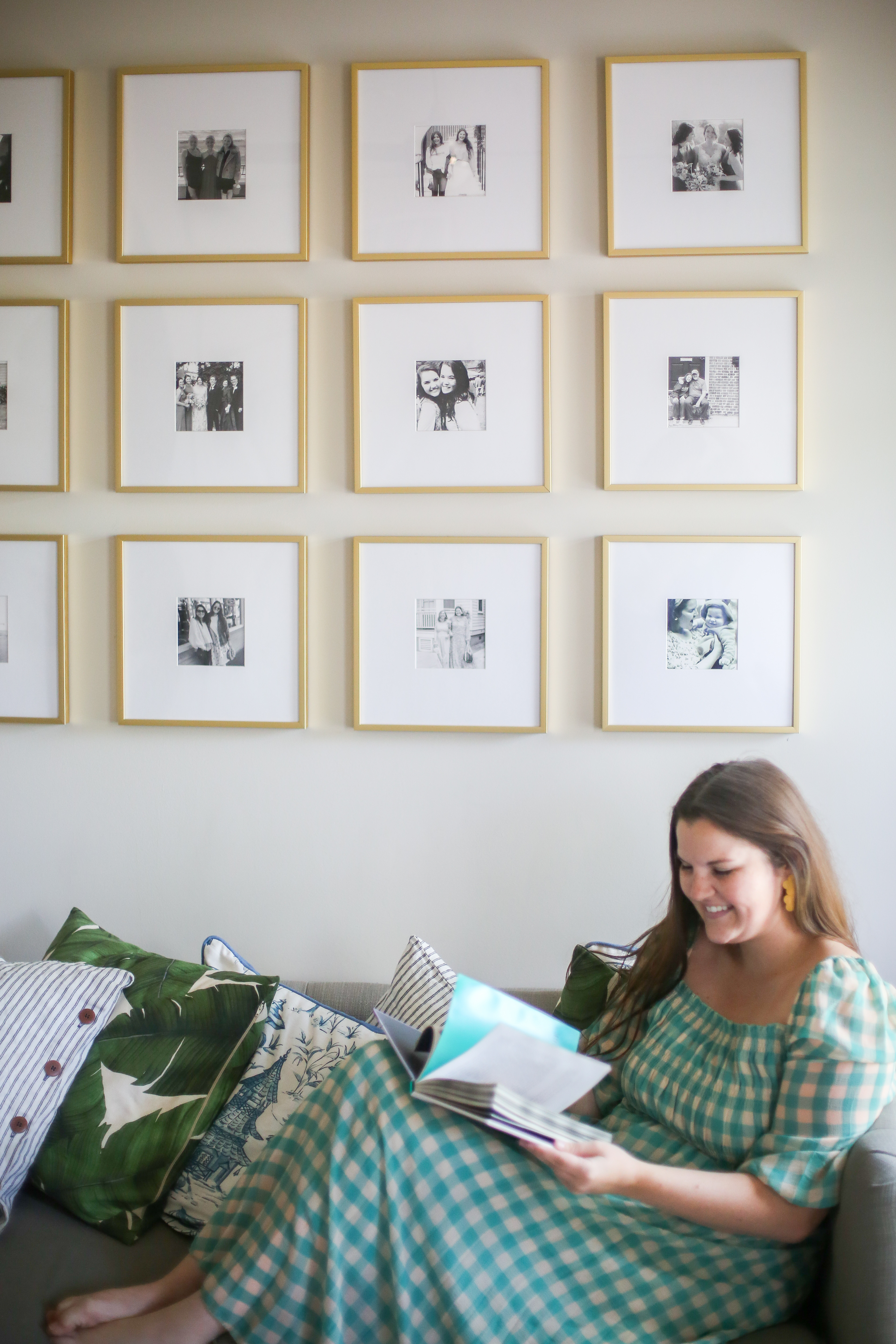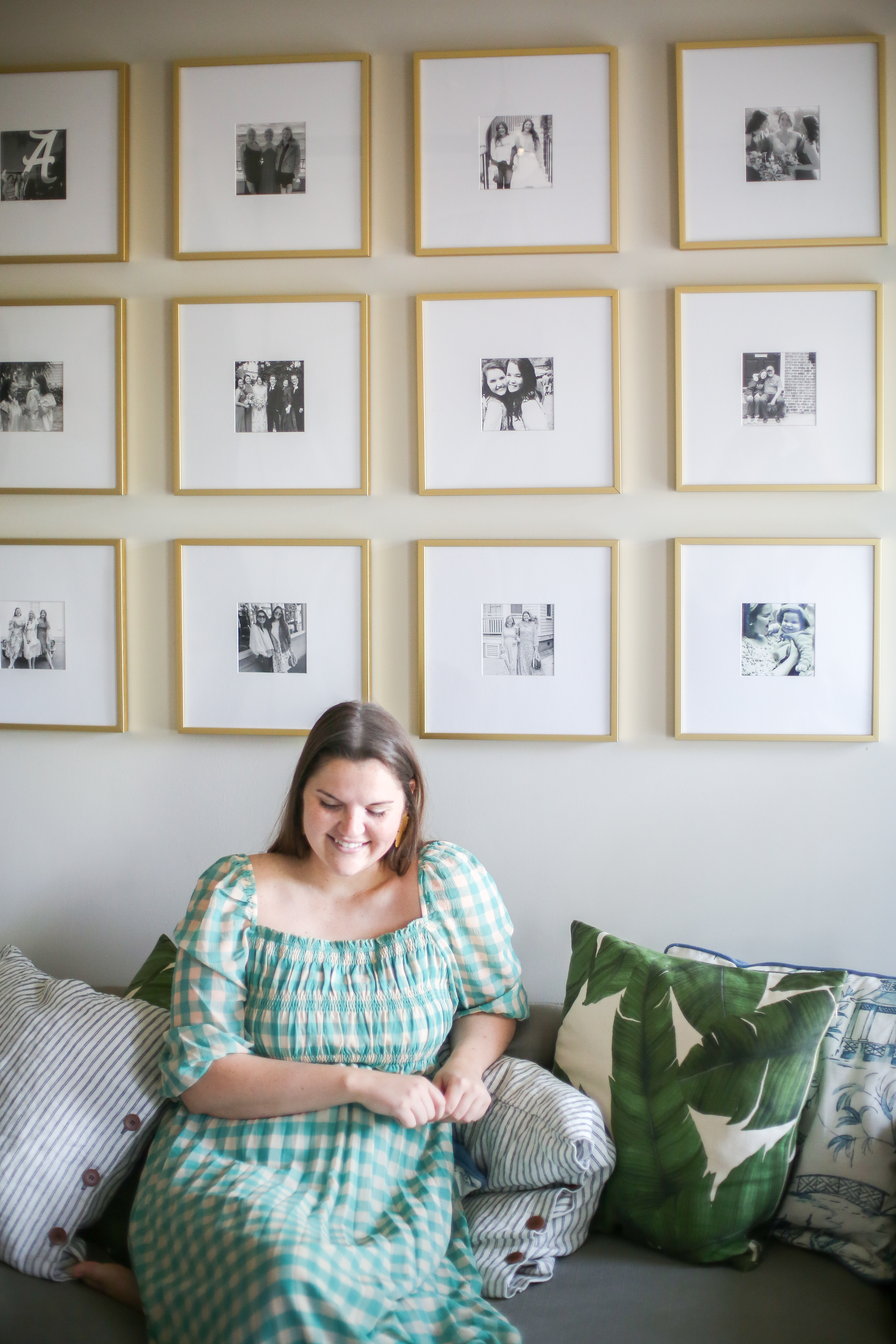 Frames: c/o Frame It Easy | Dress: ASOS | Earrings: c/o Lisi Lerch | Pillows: Palm Print & Striped Pillow