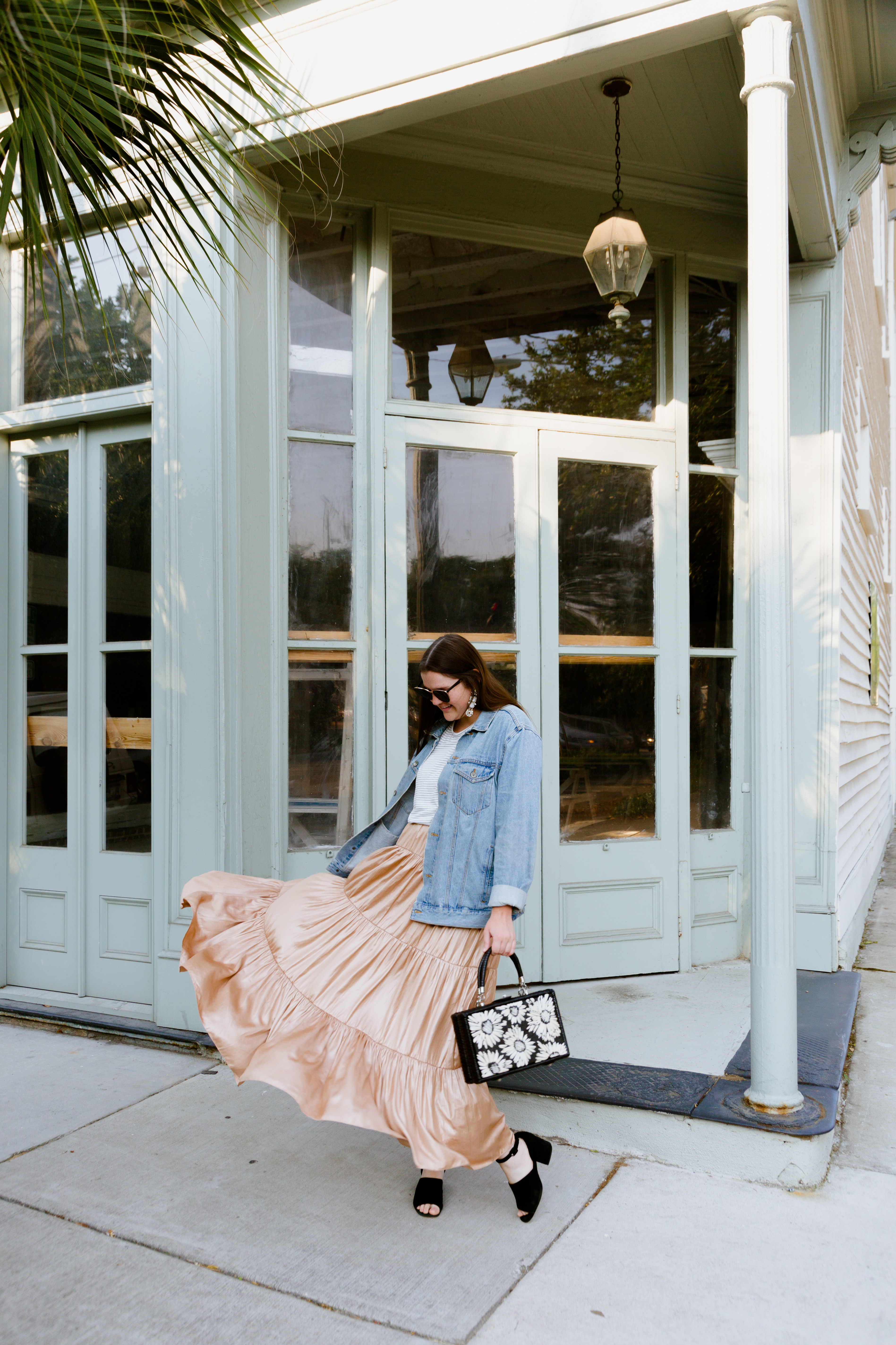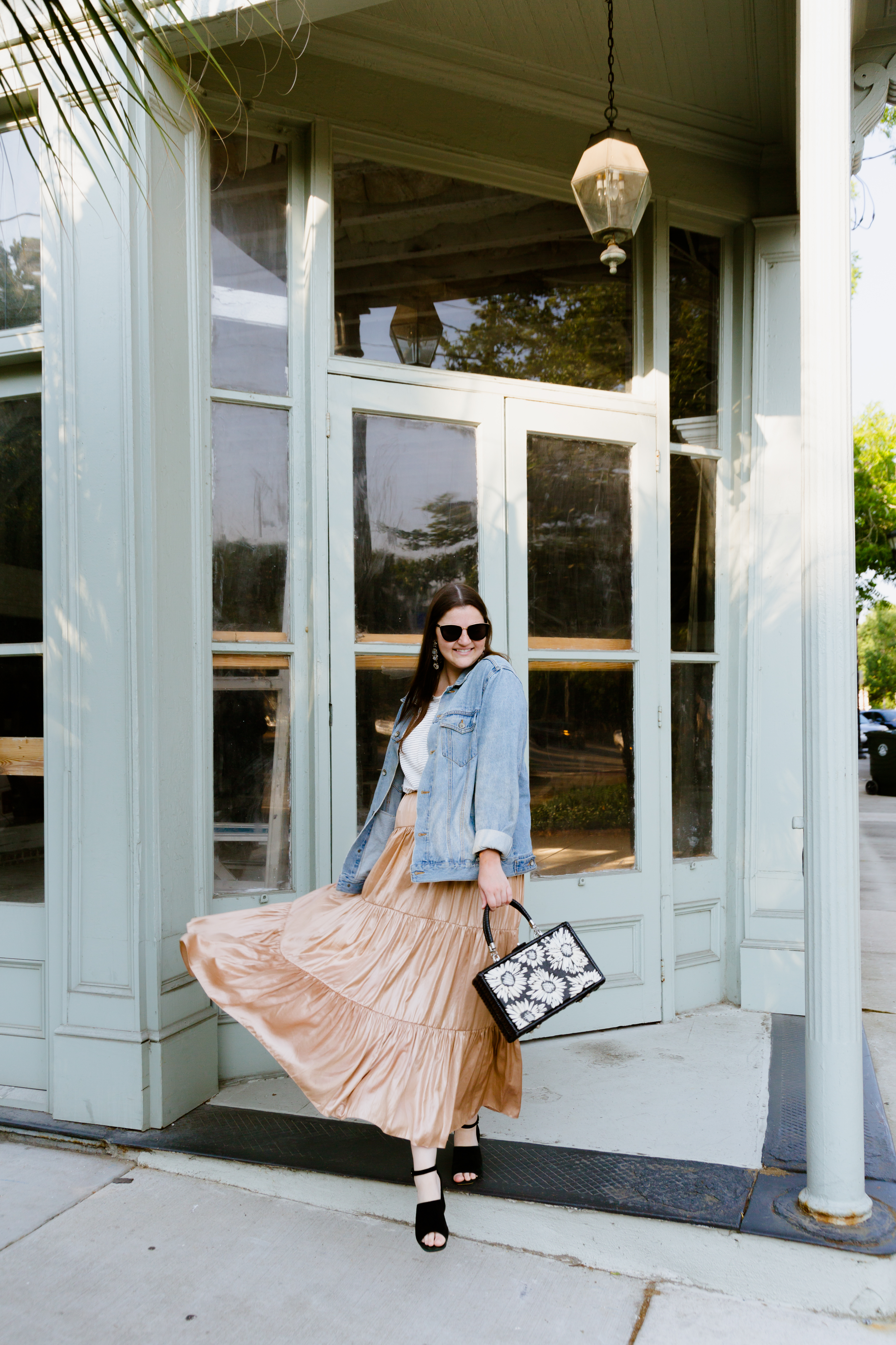 Top: H&M | Skirt: Zara | Jacket: Urban Outfitters | Shoes: Urban Outfitters (similar) | Earrings: Zara (similar) | Bag: c/o Patricia Nash | Photography: Kim Graham Photo