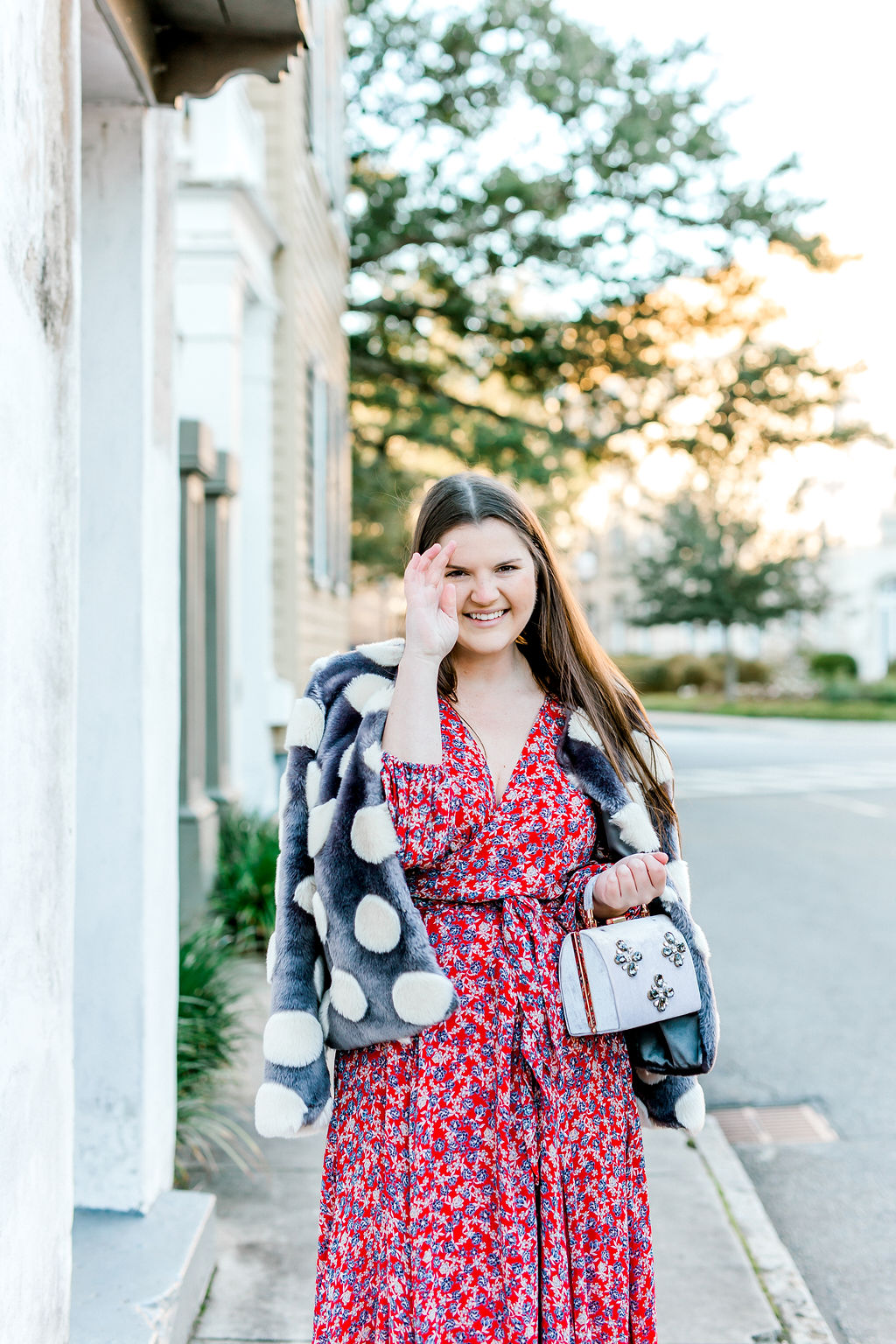 My favorite part of Unlimited is that I was more compelled to try styles that I normally wouldn’t try since the number of items you can receive in a month is, well, unlimited. Take this dress by Nicholas for example. I normally stay away from wrap dresses because I hate the way they hug my stomach. But in a spur of the moment decision, I rented it because why not! And to my surprise, I fell in love! The gorgeous floral print and flattering shape won me over. I also rented this little faux fur coat that I had originally planned to wear with another dress but loved how the mixed patterns worked together here.