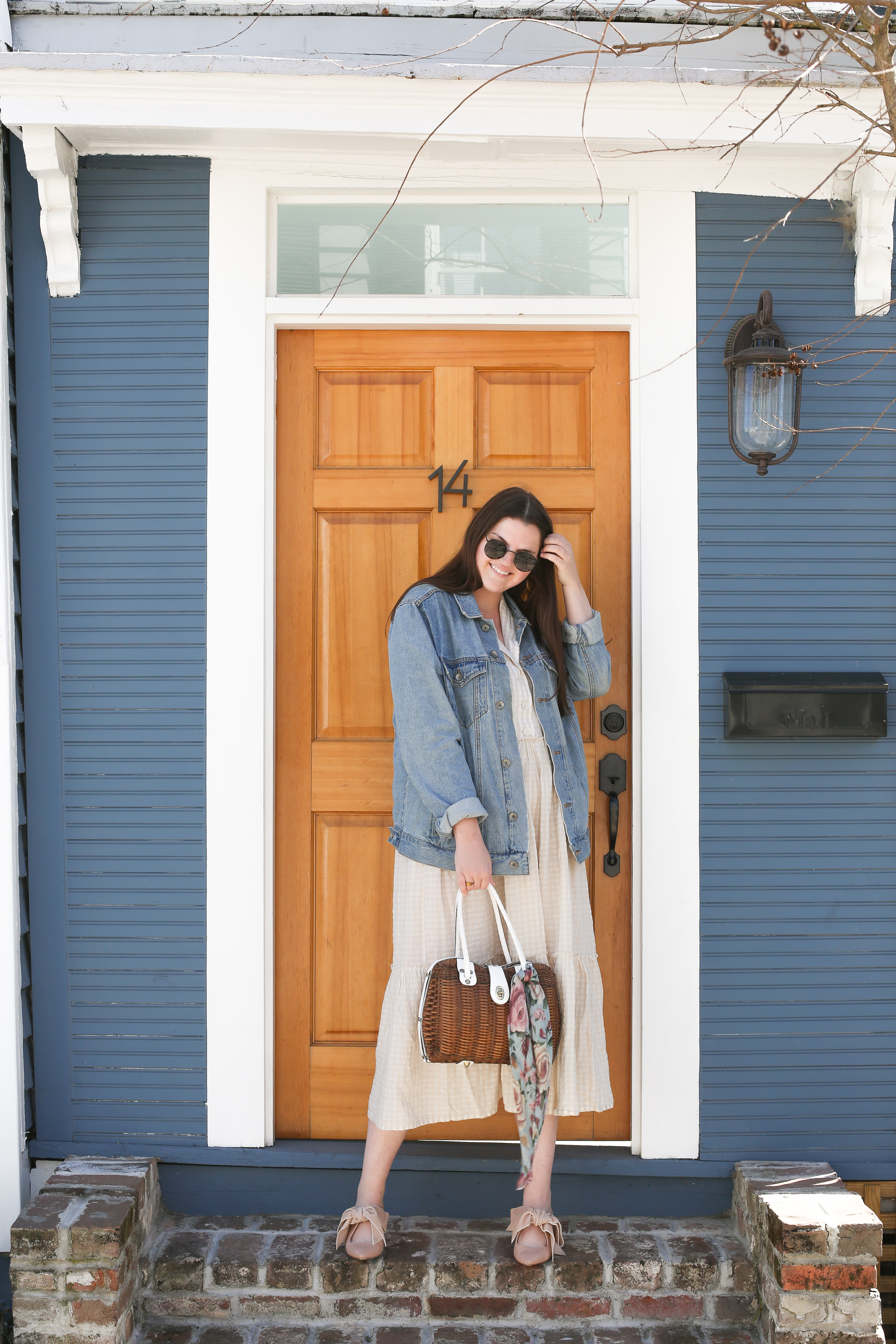 Oh my gosh – This denim jacket is PERFECTION. Love the oversized look with the feminine dress!