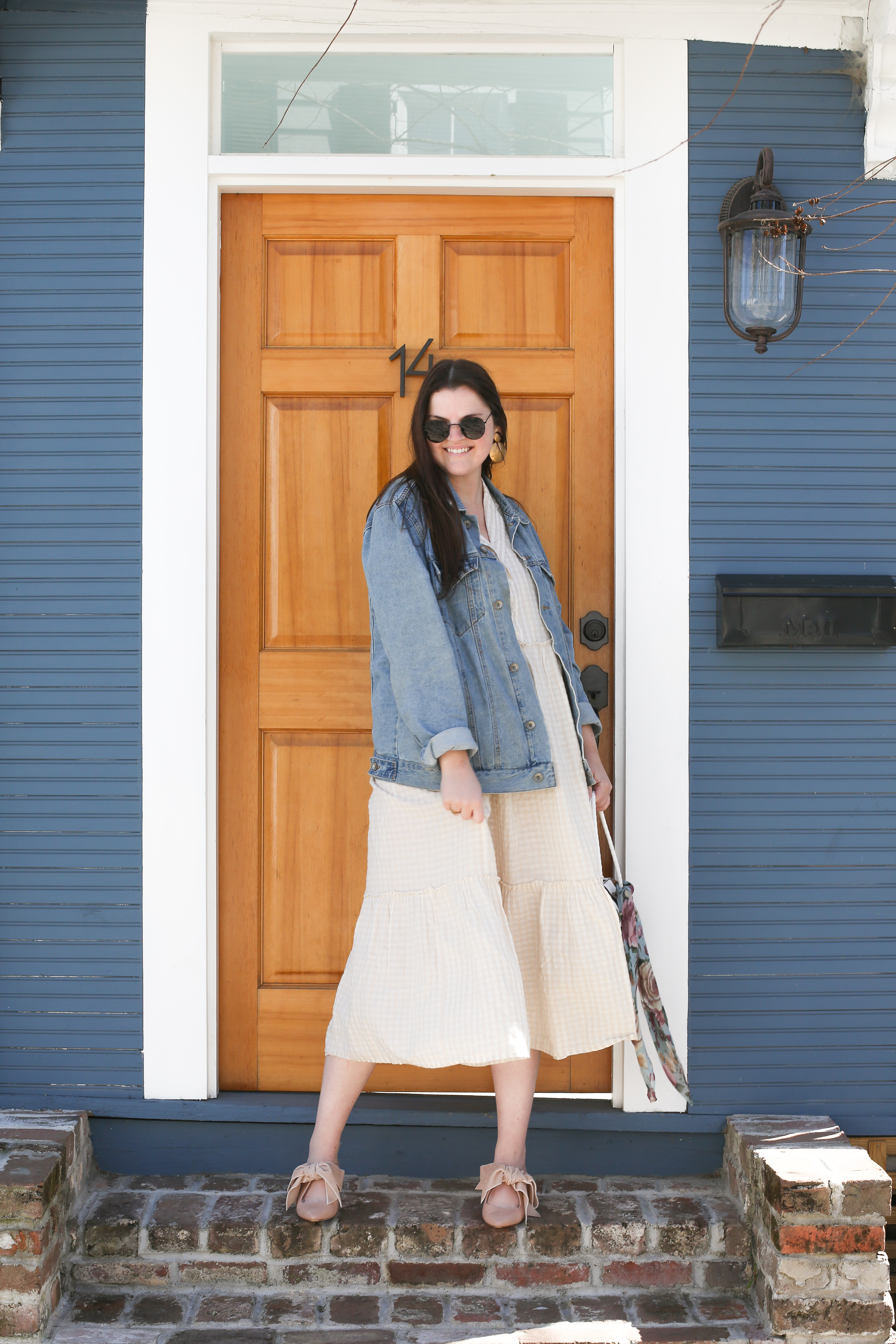 I love the fit of your jean jacket! Jean jackets are a closet staple. And your dress is so cute!