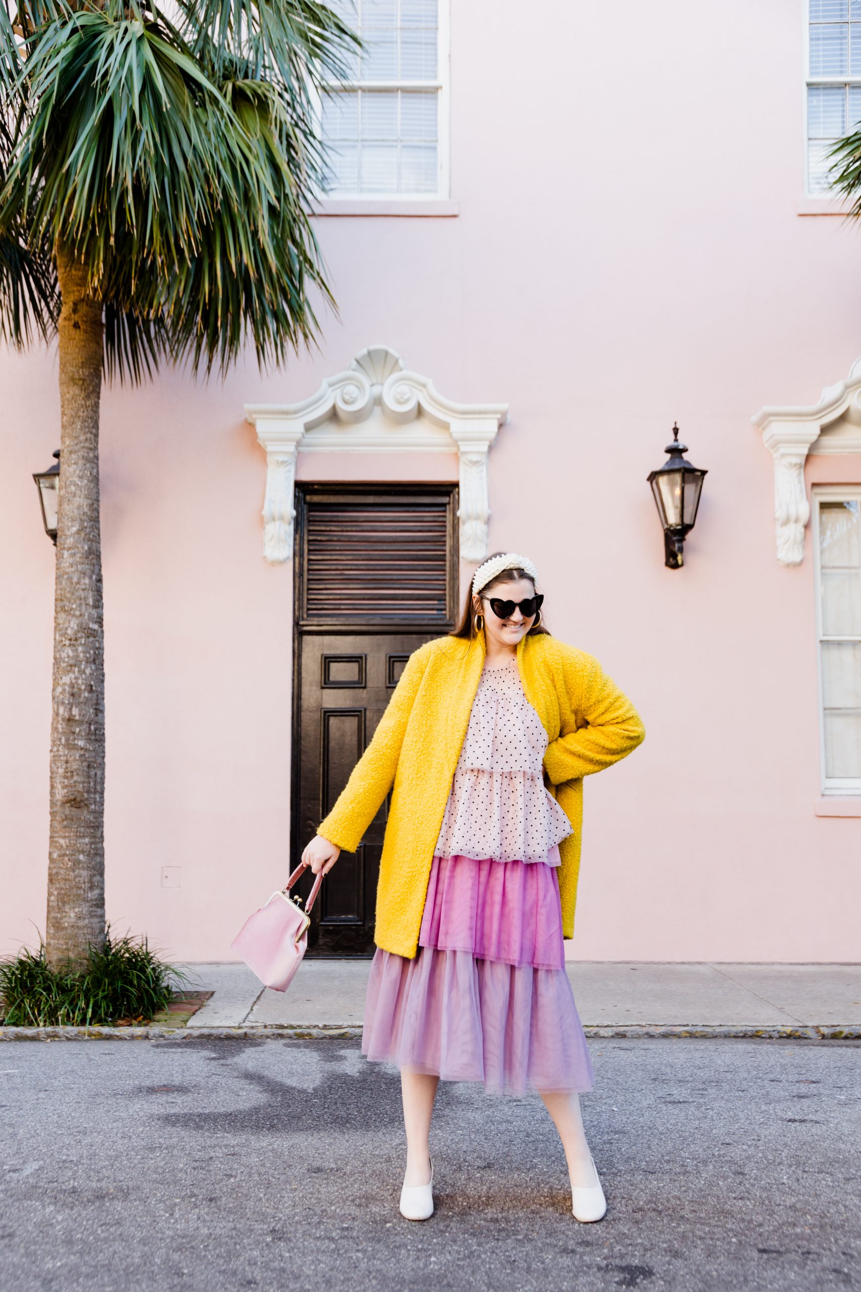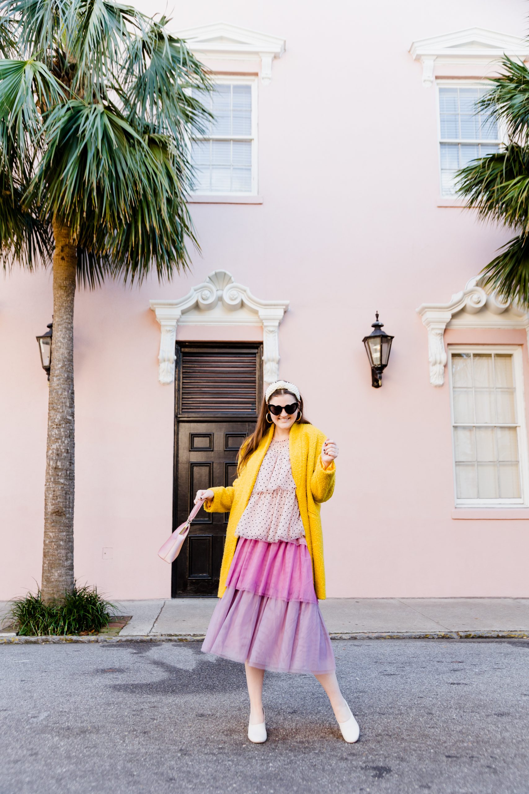 Top: Nordstrom | Skirt: Nordstrom | Coat: J.Crew | Shoes: Nordstrom | Headband: Lele Sadoughi | Earrings: Nordstrom | Bag: Anthropologie | Sunglasses: Amazon | Photography: Kim Graham Photo