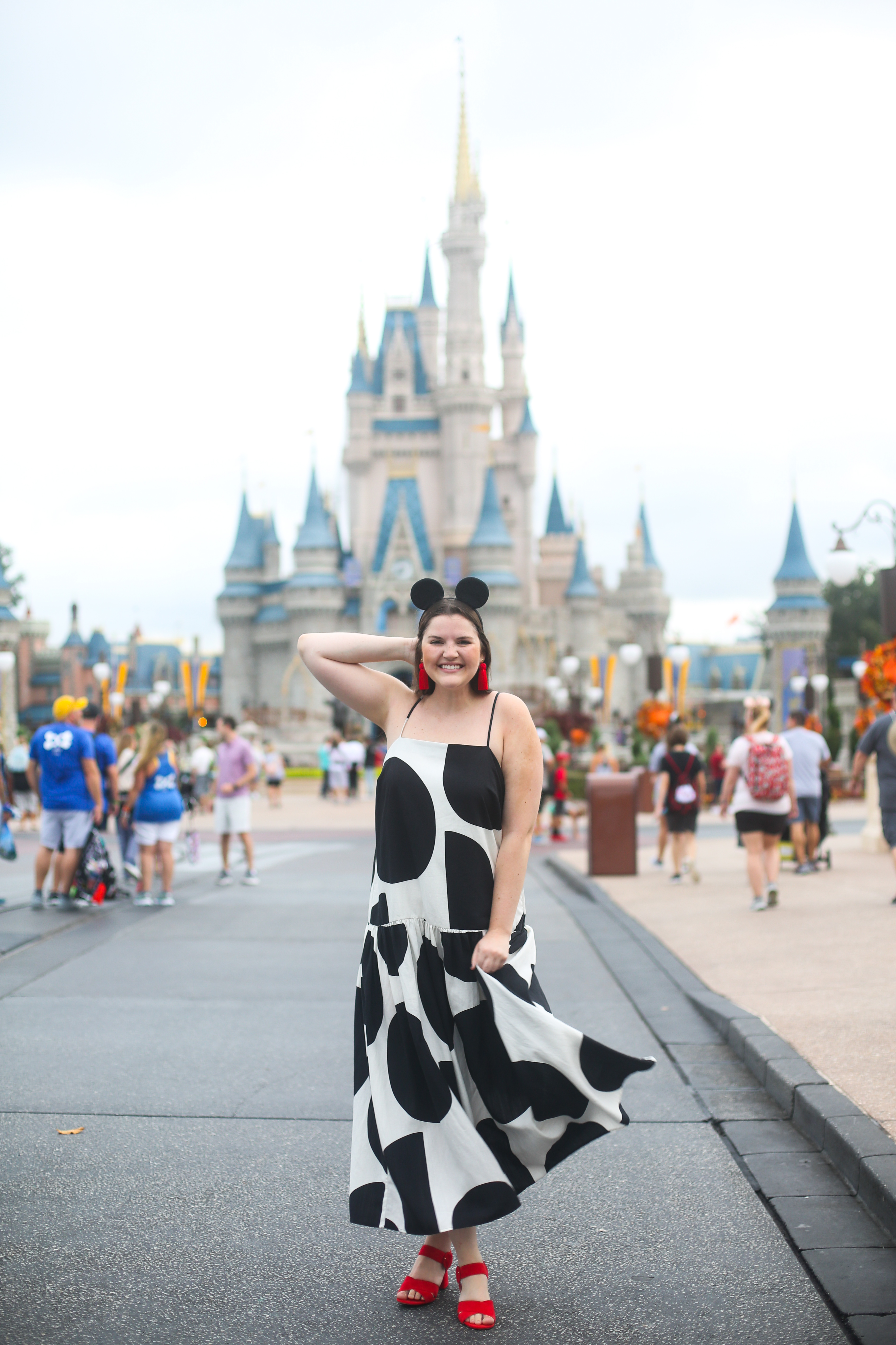 - Wear anything with polka dots!! In true Minnie Mouse fashion, I had to find a polka dot dress – and I found two! There are so many ways to dress up as your favorite character without wearing an actual costume (Disney World doesn’t allow anyone over the age of 14 wearing costumes or masks). Check out this article for inspo!