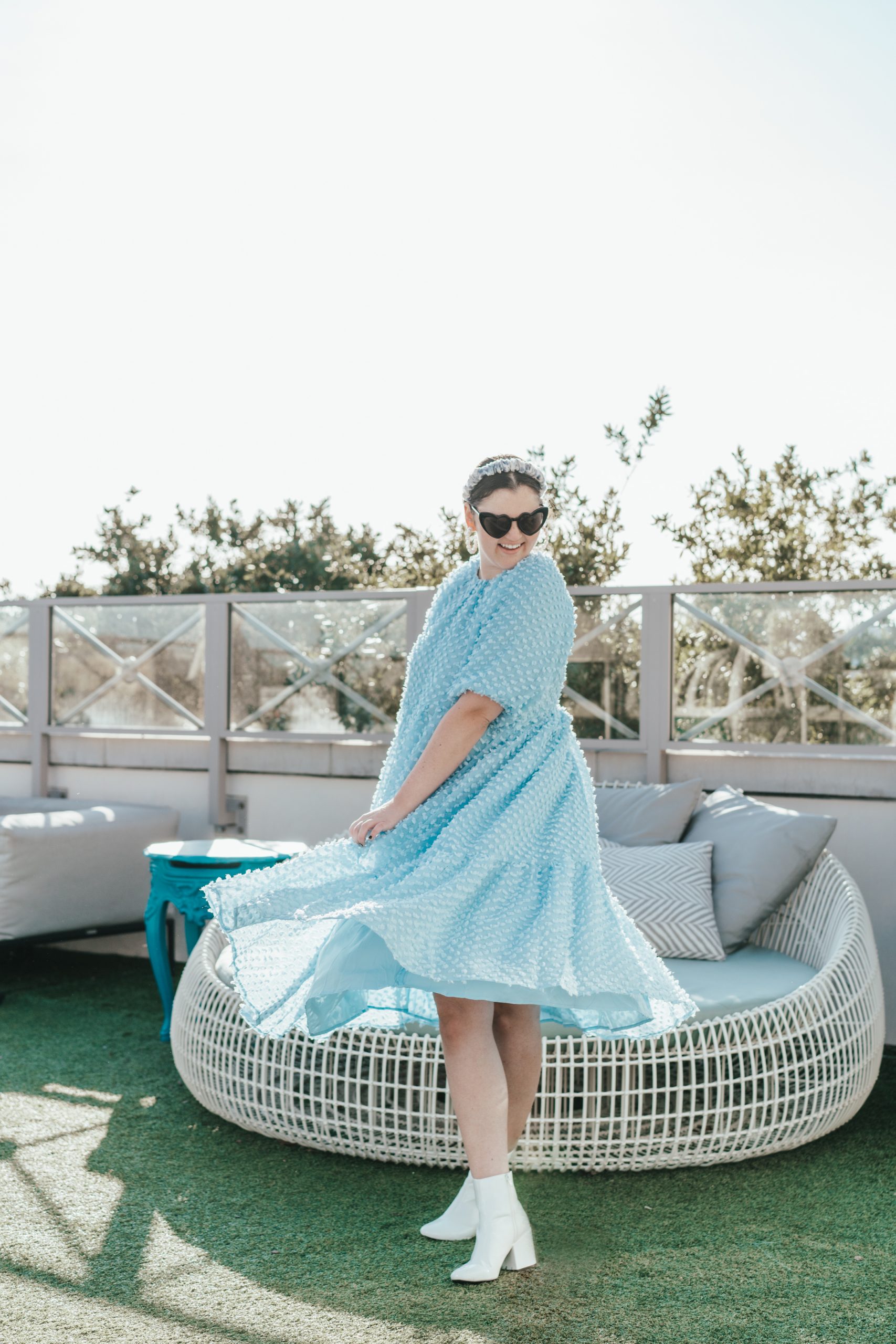 Dress: Sister Jane | Boots: Urban Outfitters | Earrings: Lele Sadoughi | Headband: ASOS | Sunglasses: Amazon | Photography: Abby Murphy Photo