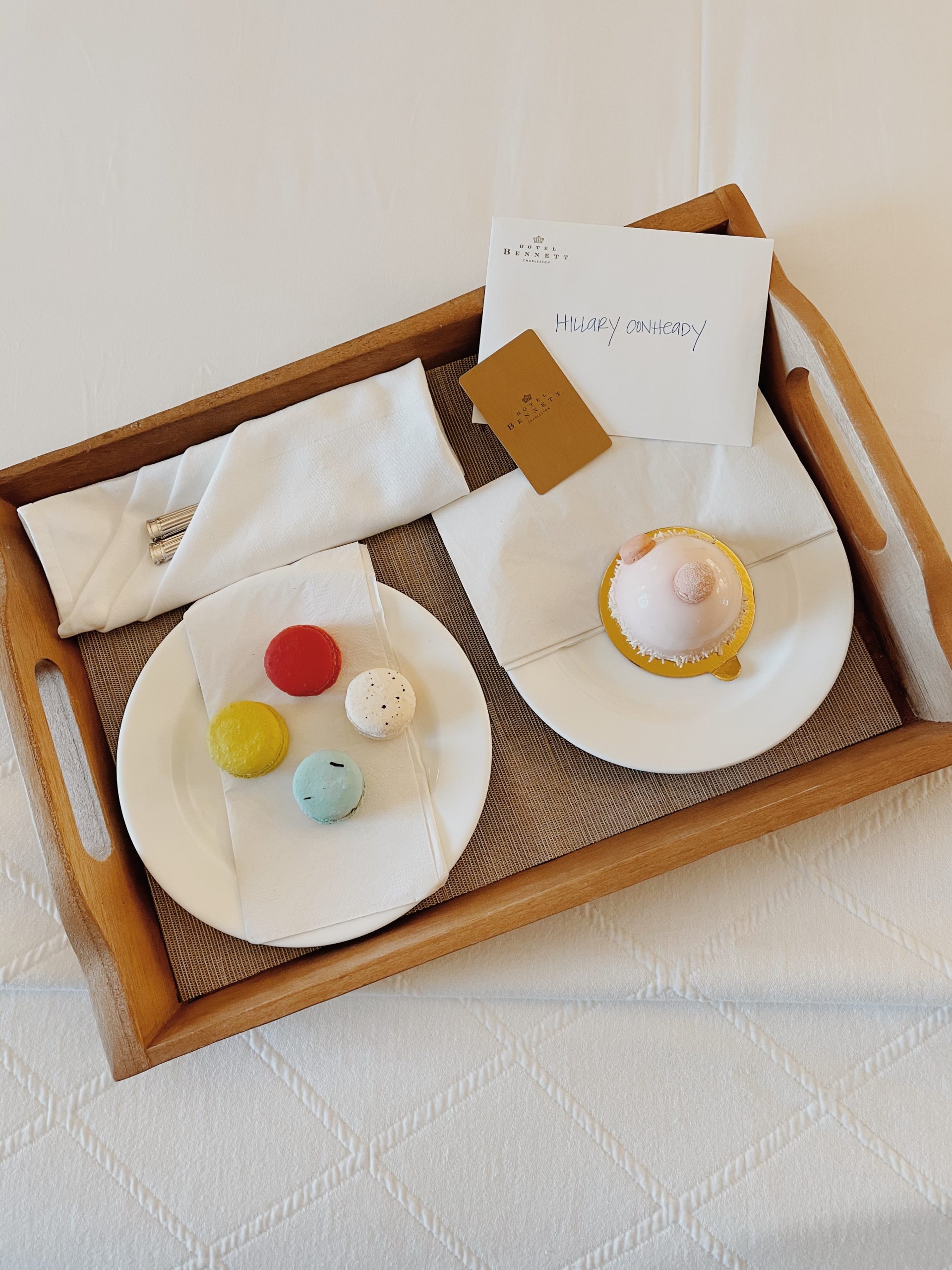 Now for the rooms (scroll down to take a peek at mine!). Let’s just say I never wanted to leave. When I walked into the room, I was greeted with such a warm welcome made up of colorful macarons and the prettiest pink Camellias Cake. I had the best night’s sleep in my big cozy bed and treated myself to a much-needed soak in my room’s bathtub because how often do you get to completely unplug from the world?! I put on a Christmas movie to watch directly from my tub and escaped for just one second. I 10/10 recommend having a tub in each hotel room moving forward.