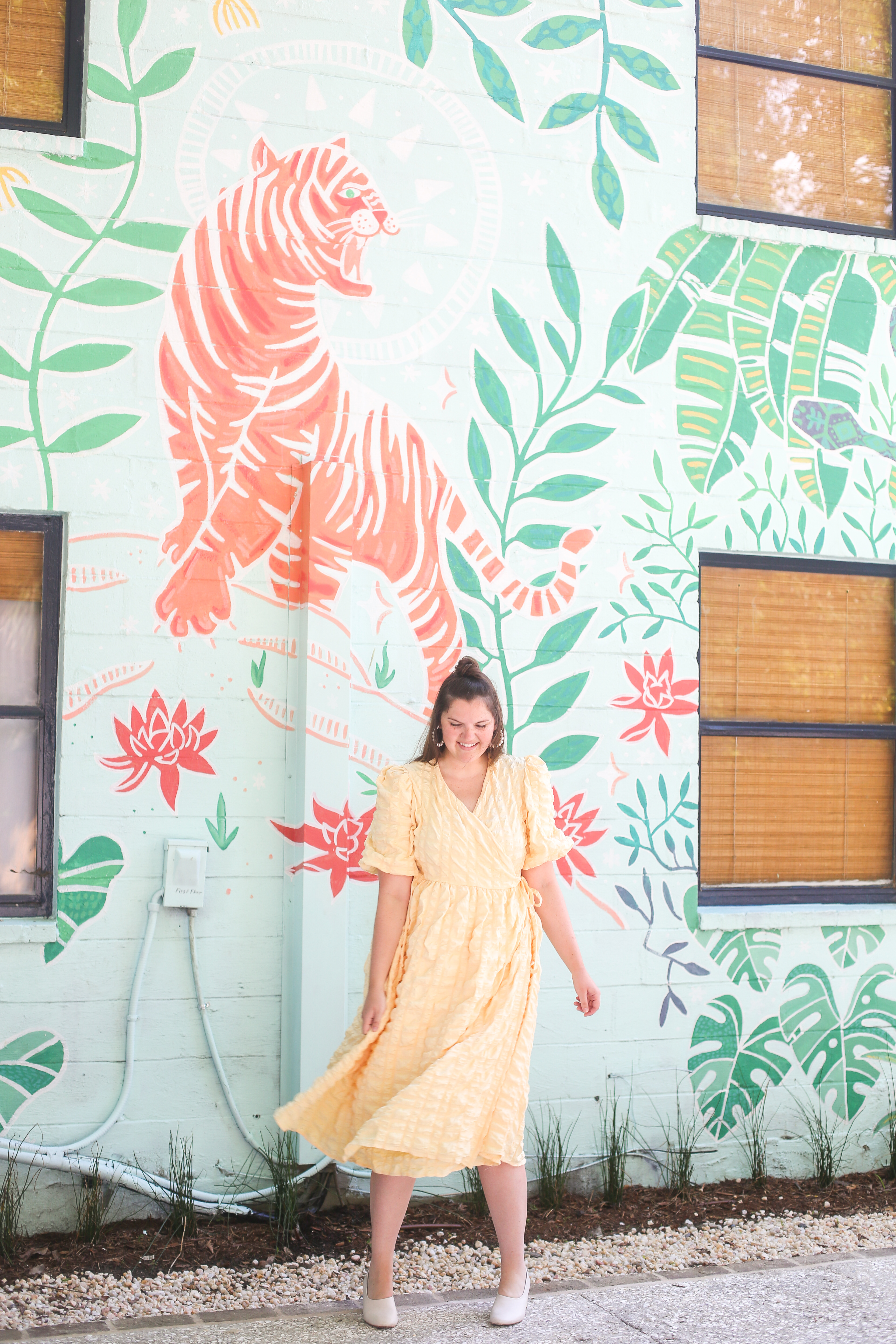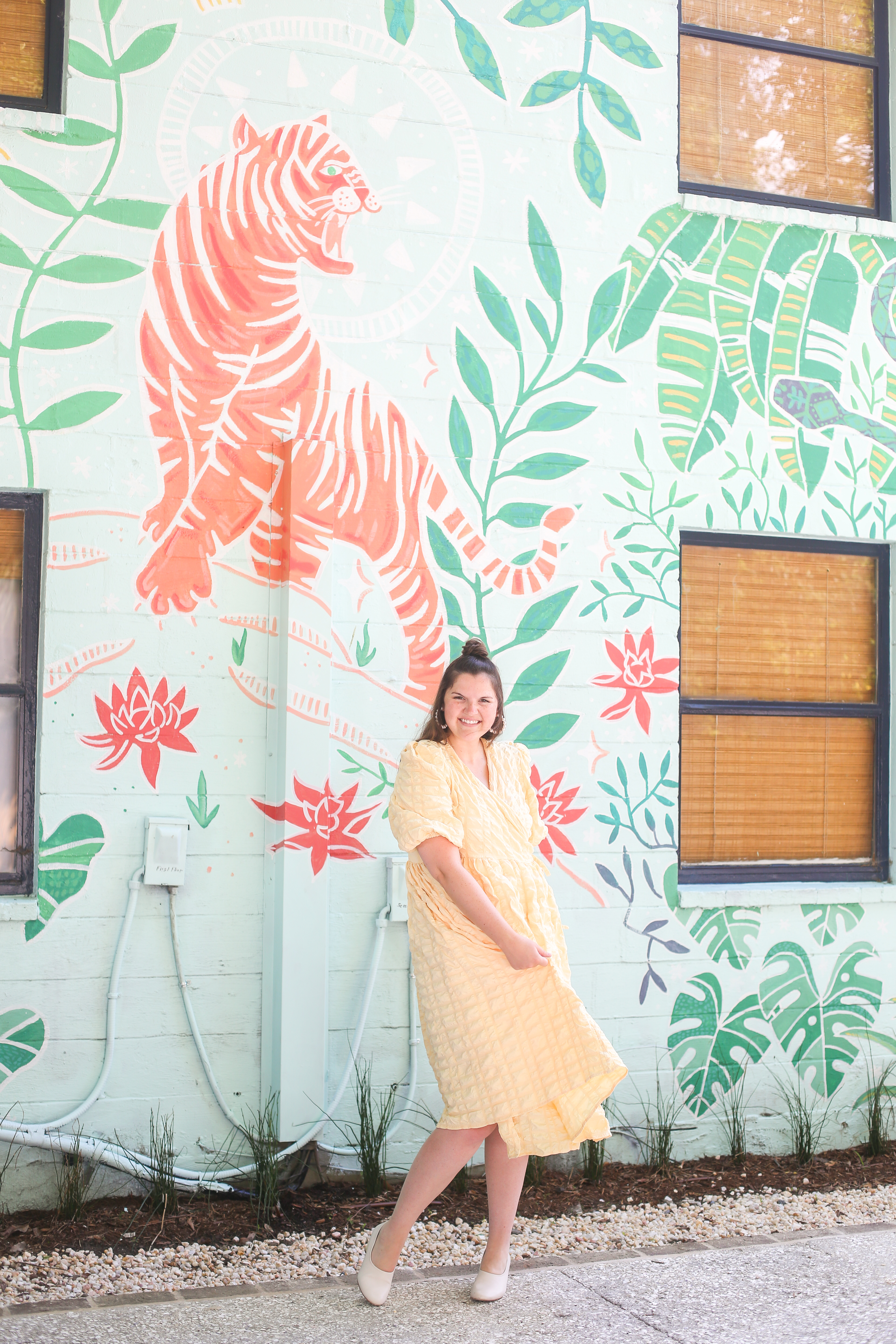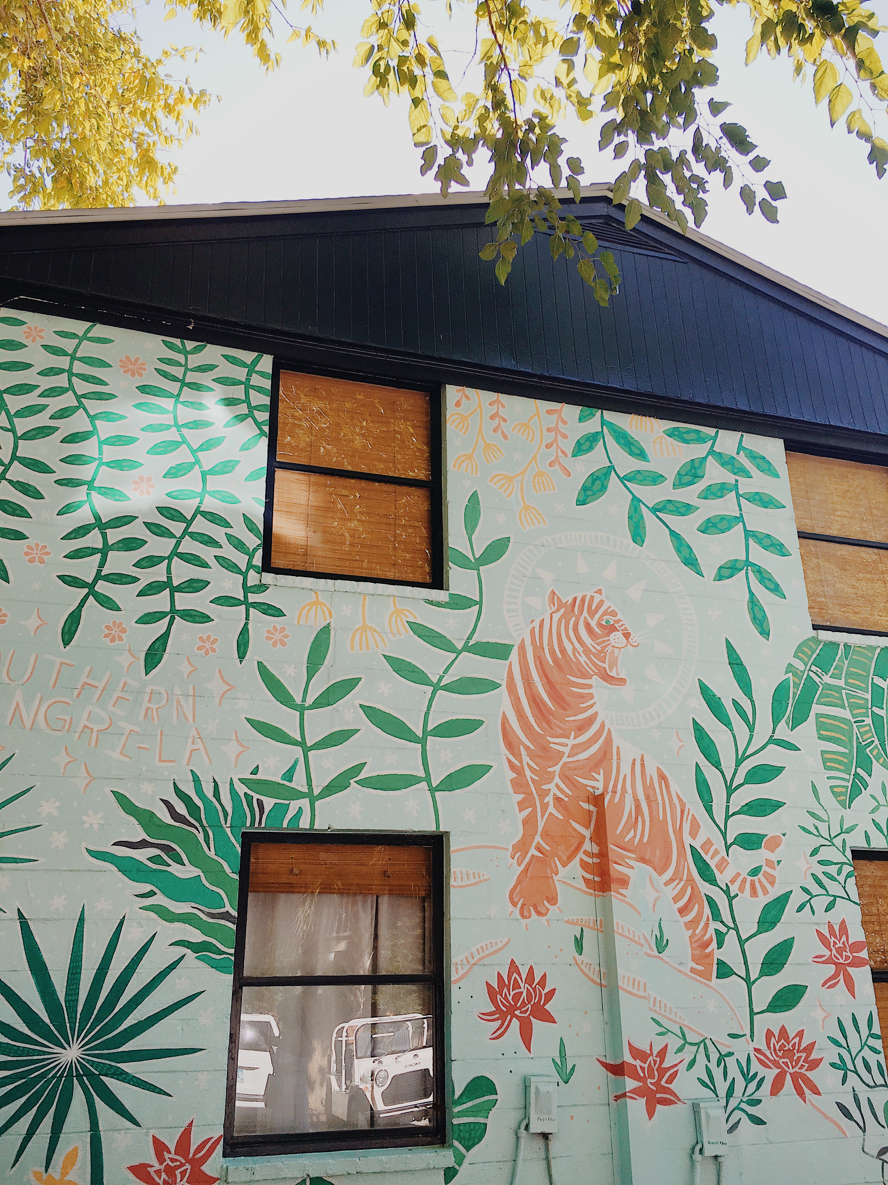 I love traveling to new cities, but there’s nothing I love more than a good staycation! It gives me an excuse to be a tourist in my own city, treat myself, and try new restaurants that I normally wouldn’t go to. Southern Shangri-La has been on the top of my staycation list so I was over the moon excited to be able to have a little sleepover a couple of weeks ago! This is definitely one of the prettiest Airbnbs I’ve ever stayed in! I’ve driven by this building more times than I can count and I never knew this beautiful oasis with the coolest tiger mural was right on the other side!