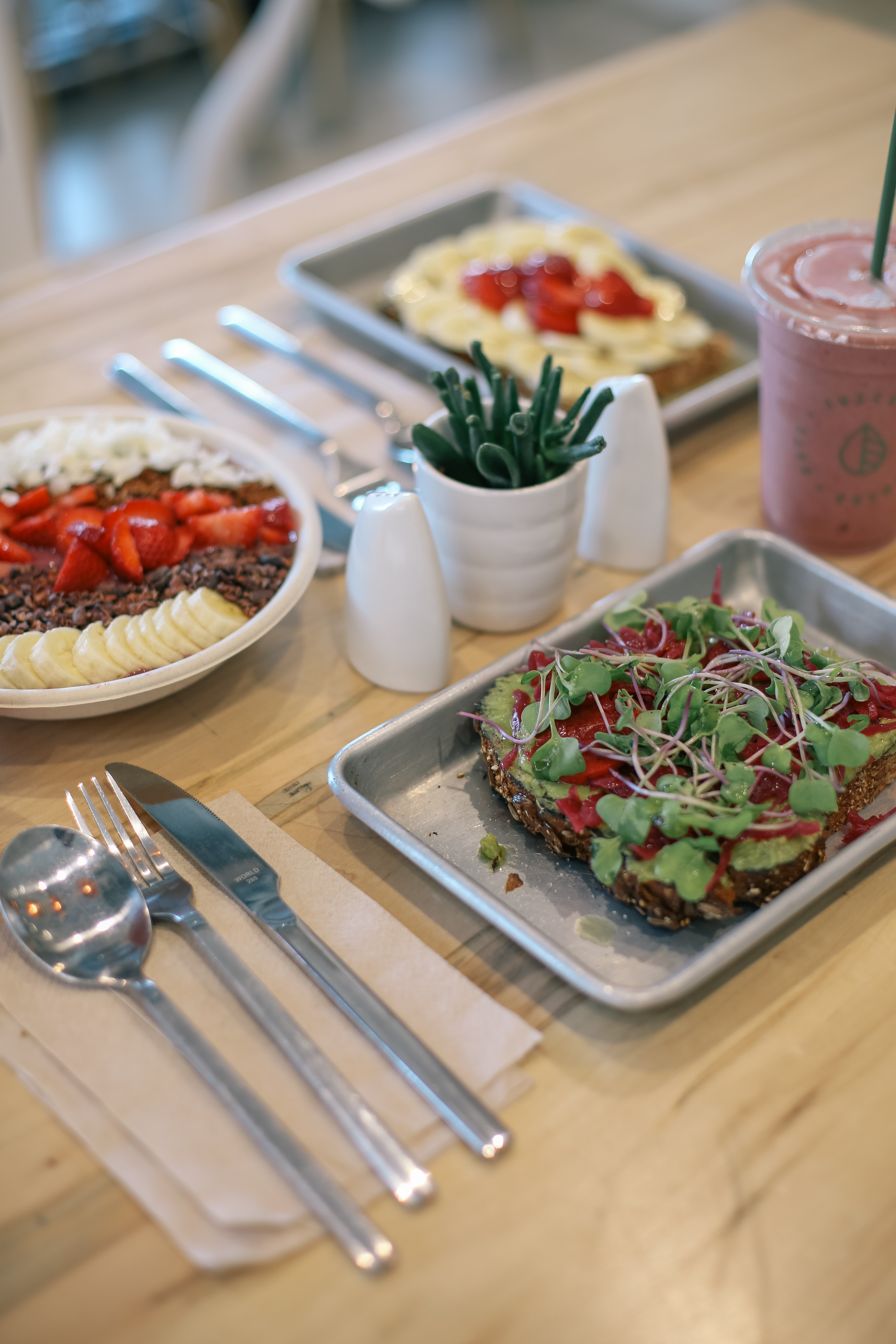 It’s no secret that us bloggers love an aesthetically pleasing restaurant. Village Juice is just that. We couldn’t stop oohing and awing over the all-white atmosphere and decor. Then they continued to impress us with our beautiful and tasty breakfast. I opted for the avocado toast while Laura ordered the nut butter and banana toast. We both split their amazing acai bowl!