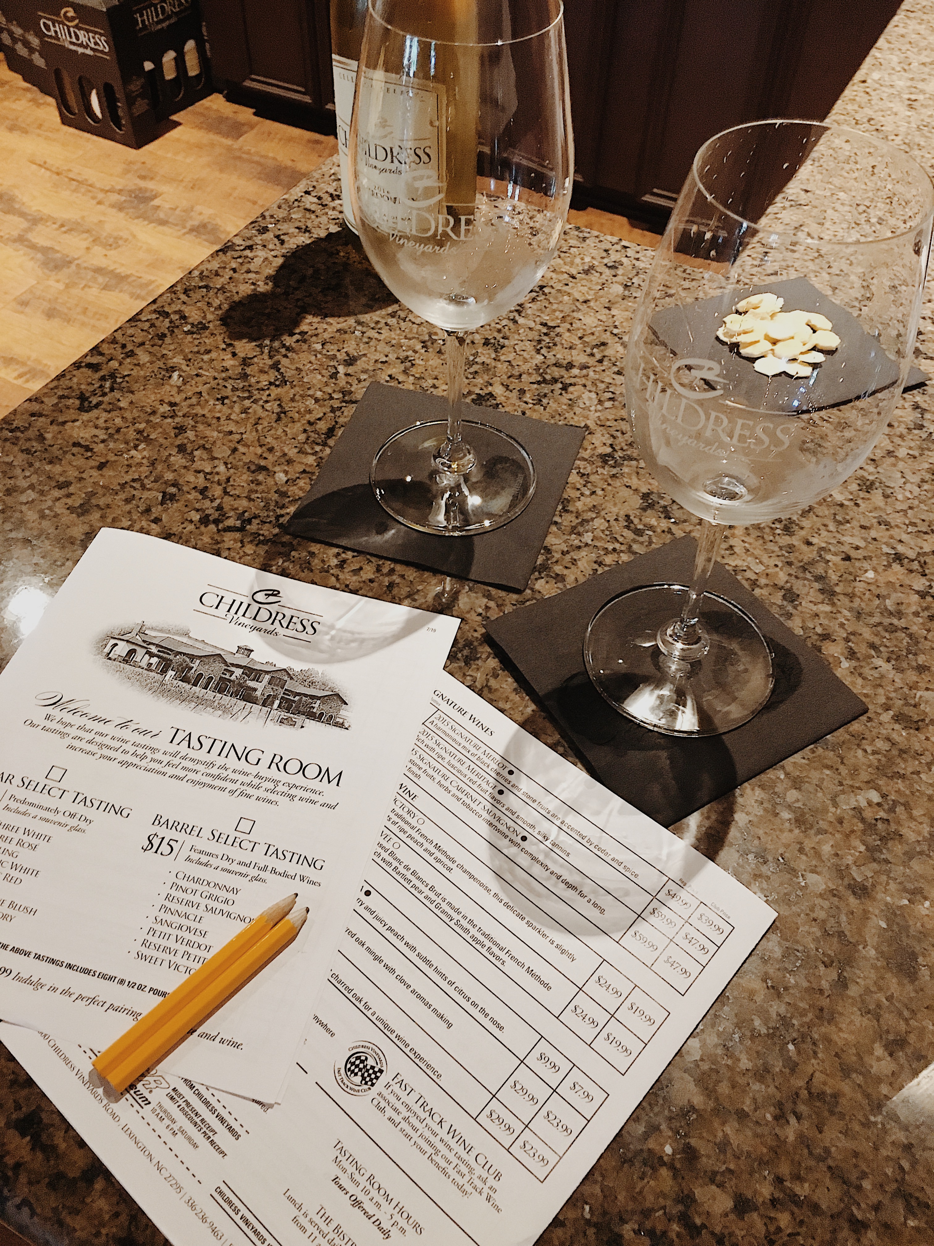 A visit to Childress Vineyards was the perfect way to end our already amazing trip! We had a fun time at our wine tasting trying the various different white wines Childress has to offer. We then sipped on a glass of wine during lunch while overlooking the vineyards! Talk about picture perfect!